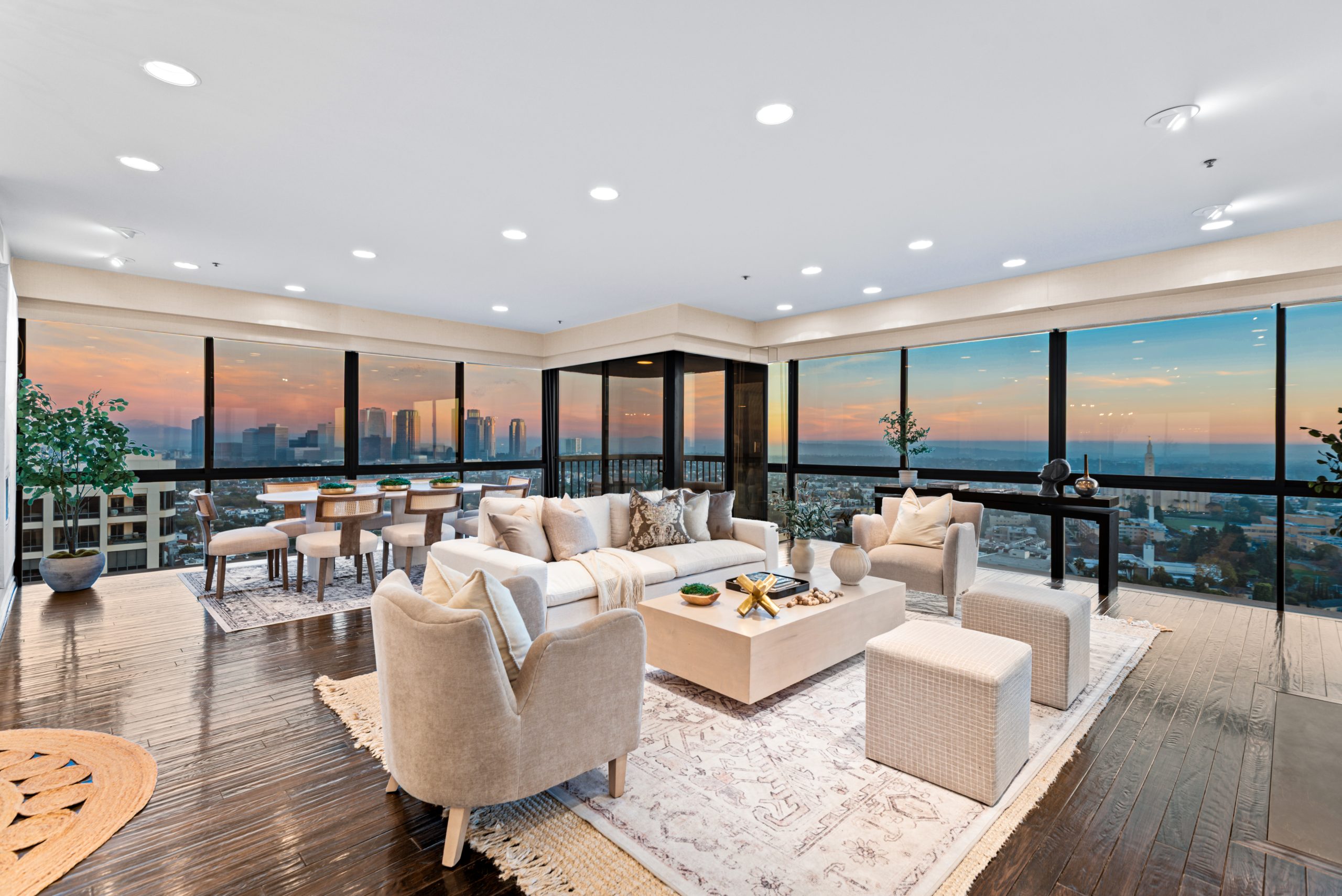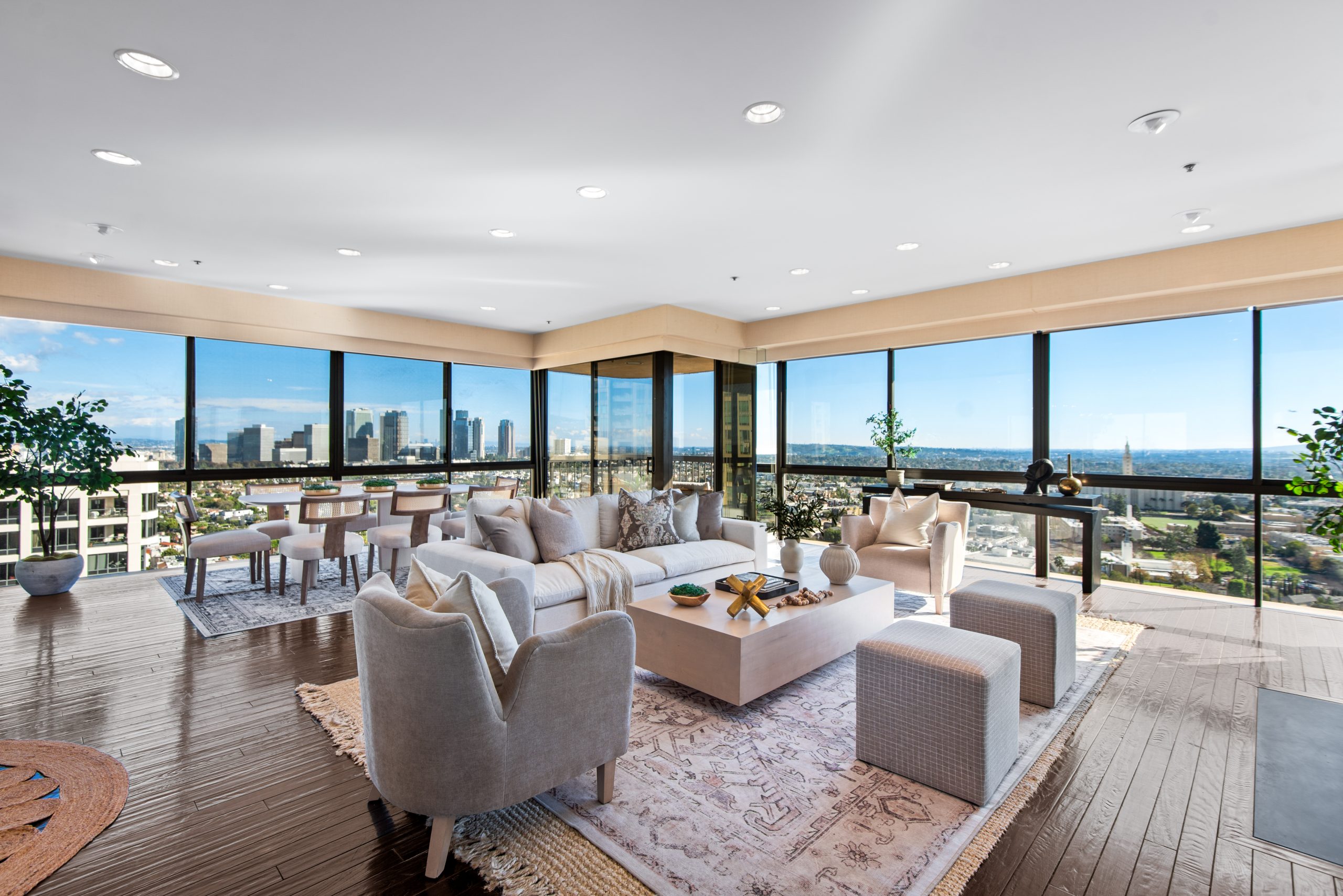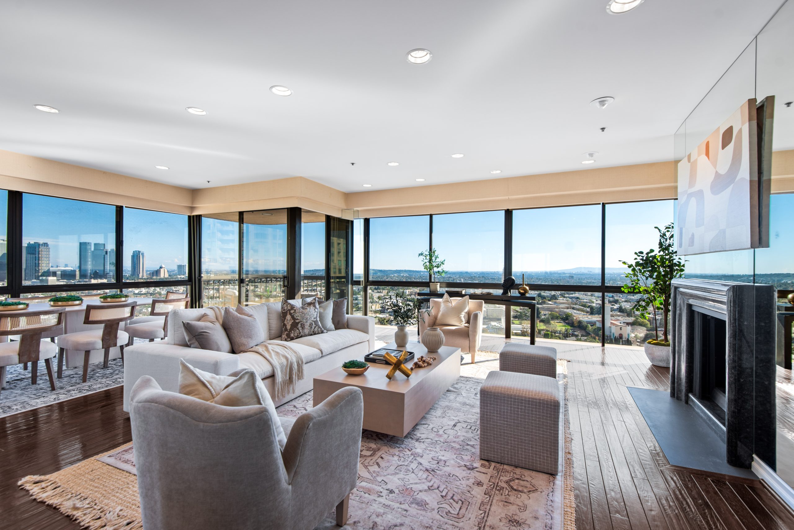Rising high above the Wilshire Corridor at the coveted Westford on the 15th floor, this expansive 3 bedroom, 4 bathroom corner residence offers nearly 2,700 SQFT of refined living space paired with sweeping unobstructed panoramic views stretching from the Downtown LA skyline to the Pacific Ocean. Dramatic floor-to-ceiling windows frame the ever changing cityscape, while multiple balconies invite the outdoors in, effortlessly extending the living experience. The layout is both generous and thoughtfully designed, delivering a unique sense of privacy rarely found in high-rise living. The main living space flows effortlessly for both everyday living and elegant entertaining, offering an open floor plan anchored by a cozy fireplace that adds warmth and dimension as the city lights come alive at dusk. Spacious dining area and separate family room further enhance the home’s excellent functionality. A cook’s kitchen boasts granite countertops, an abundance of cabinetry, and a convenient breakfast area. At the end of the day, retreat to the primary suite, featuring a large walk-in closet with custom built-ins, a private balcony, and a well-appointed en-suite bathroom. Secondary bedrooms are generously sized and each enjoys its own en-suite bath. The Westford delivers a truly elevated full-service lifestyle with seamless lock-and-leave experience, featuring 24/7 concierge and security, valet parking with two designated side-by-side spaces, a fitness center, pool and spa, saunas, and an elegant resident social room. HOA dues include earthquake insurance, storage space, water, sewer, and WiFi with basic cable. Ideally situated just moments from UCLA, Westwood Village, Century City, and Beverly Hills, the location offers effortless proximity to world-class dining, shopping, cultural destinations, key city routes, and freeways. A rare Wilshire Corridor offering defined by scale, discretion, service, and commanding views.