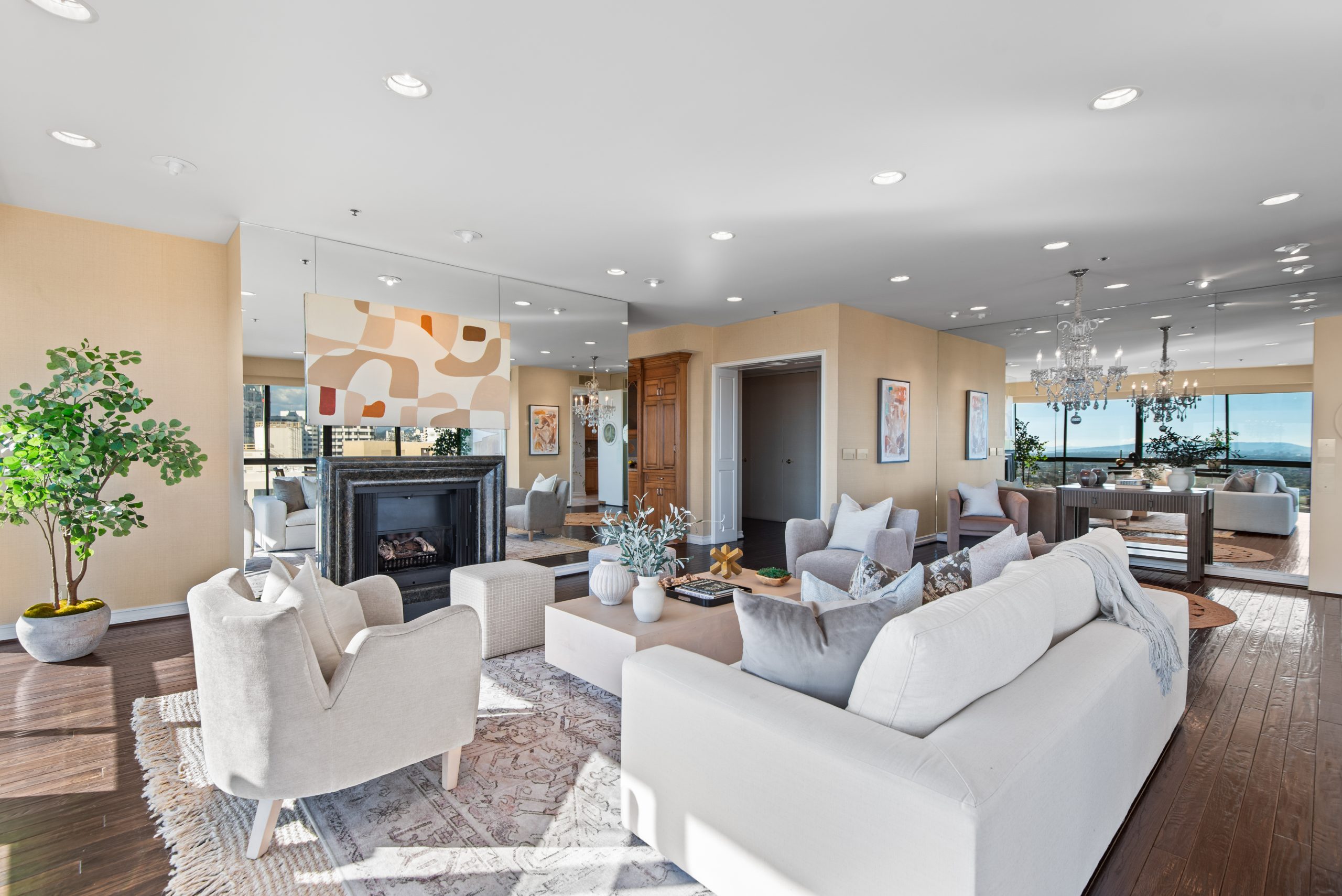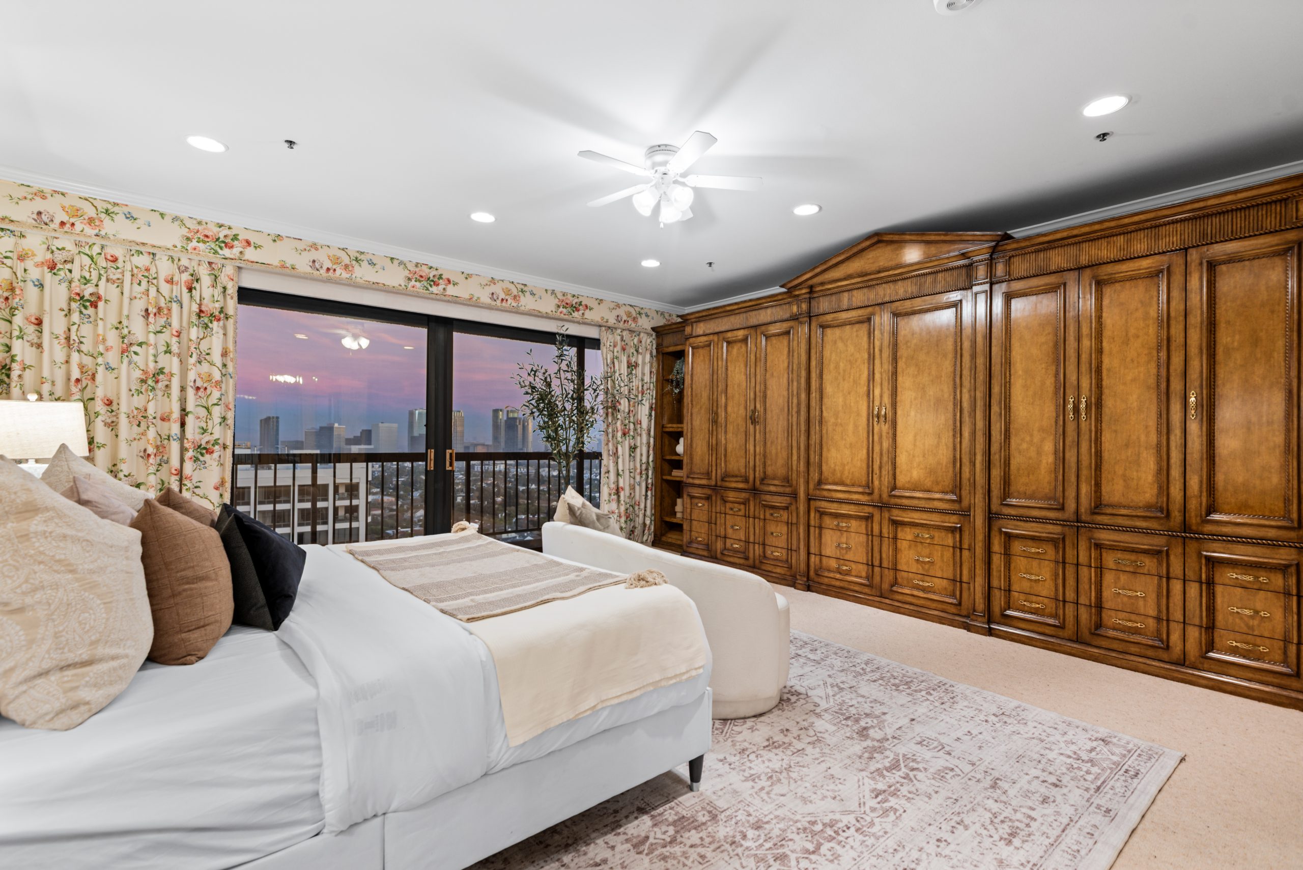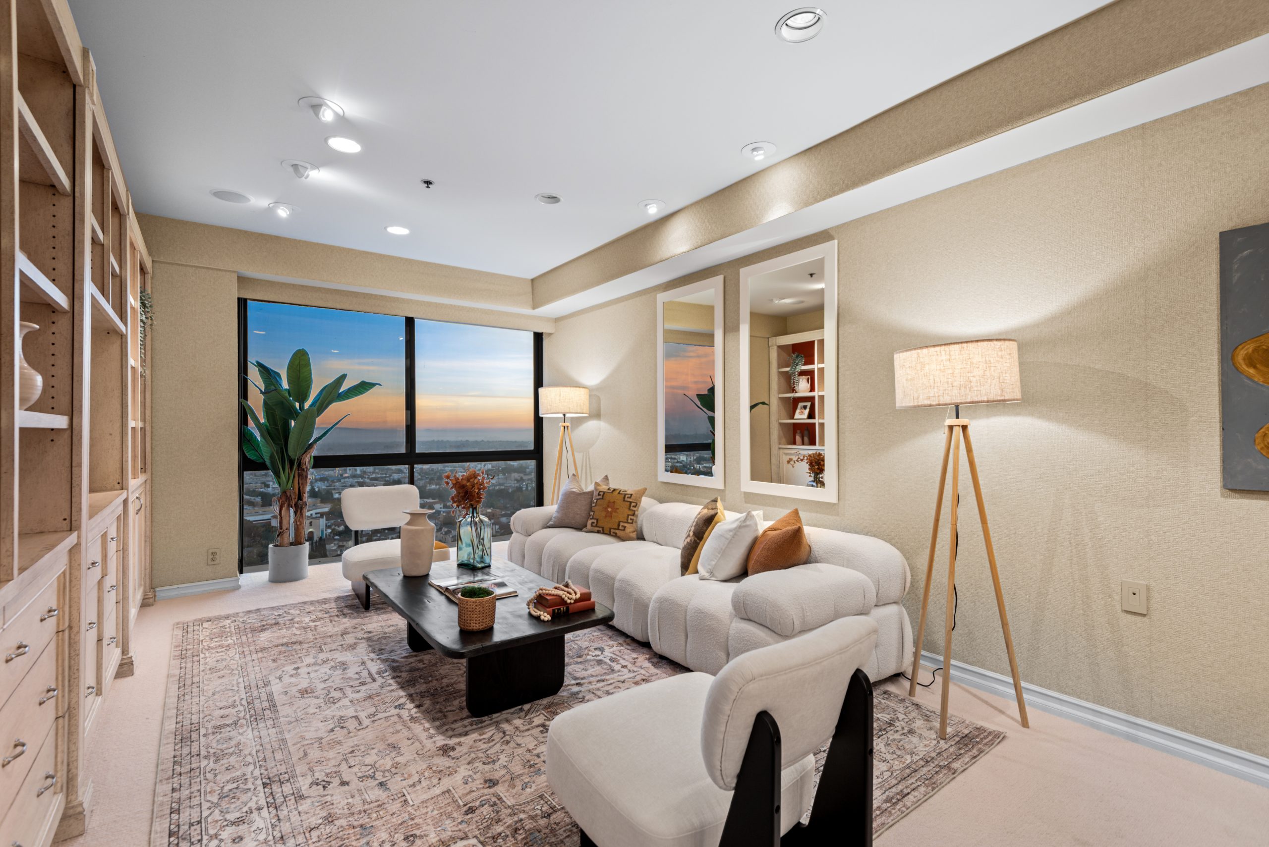 Rising high above the Wilshire Corridor at the coveted Westford on the 15th floor, this expansive 3 bedroom, 4 bathroom corner residence offers nearly 2,700 SQFT of refined living space paired with sweeping unobstructed panoramic views stretching from the Downtown LA skyline to the Pacific Ocean. Dramatic floor-to-ceiling windows frame the ever changing cityscape, while multiple balconies invite the outdoors in, effortlessly extending the living experience. The layout is both generous and thoughtfully designed, delivering a unique sense of privacy rarely found in high-rise living. The main living space flows effortlessly for both everyday living and elegant entertaining, offering an open floor plan anchored by a cozy fireplace that adds warmth and dimension as the city lights come alive at dusk. Spacious dining area and separate family room further enhance the home’s excellent functionality. A cook’s kitchen boasts granite countertops, an abundance of cabinetry, and a convenient breakfast area. At the end of the day, retreat to the primary suite, featuring a large walk-in closet with custom built-ins, a private balcony, and a well-appointed en-suite bathroom. Secondary bedrooms are generously sized and each enjoys its own en-suite bath. The Westford delivers a truly elevated full-service lifestyle with seamless lock-and-leave experience, featuring 24/7 concierge and security, valet parking with two designated side-by-side spaces, a fitness center, pool and spa, saunas, and an elegant resident social room. HOA dues include earthquake insurance, storage space, water, sewer, and WiFi with basic cable. Ideally situated just moments from UCLA, Westwood Village, Century City, and Beverly Hills, the location offers effortless proximity to world-class dining, shopping, cultural destinations, key city routes, and freeways. A rare Wilshire Corridor offering defined by scale, discretion, service, and commanding views.