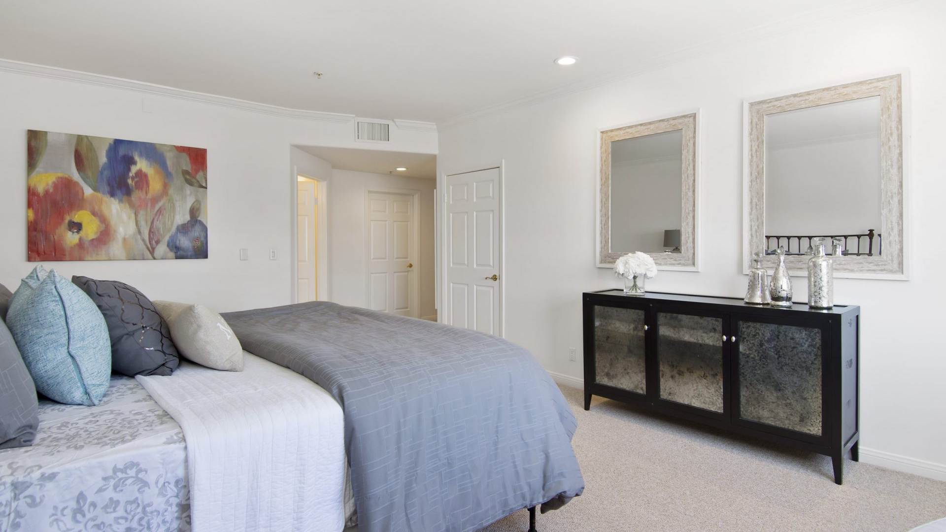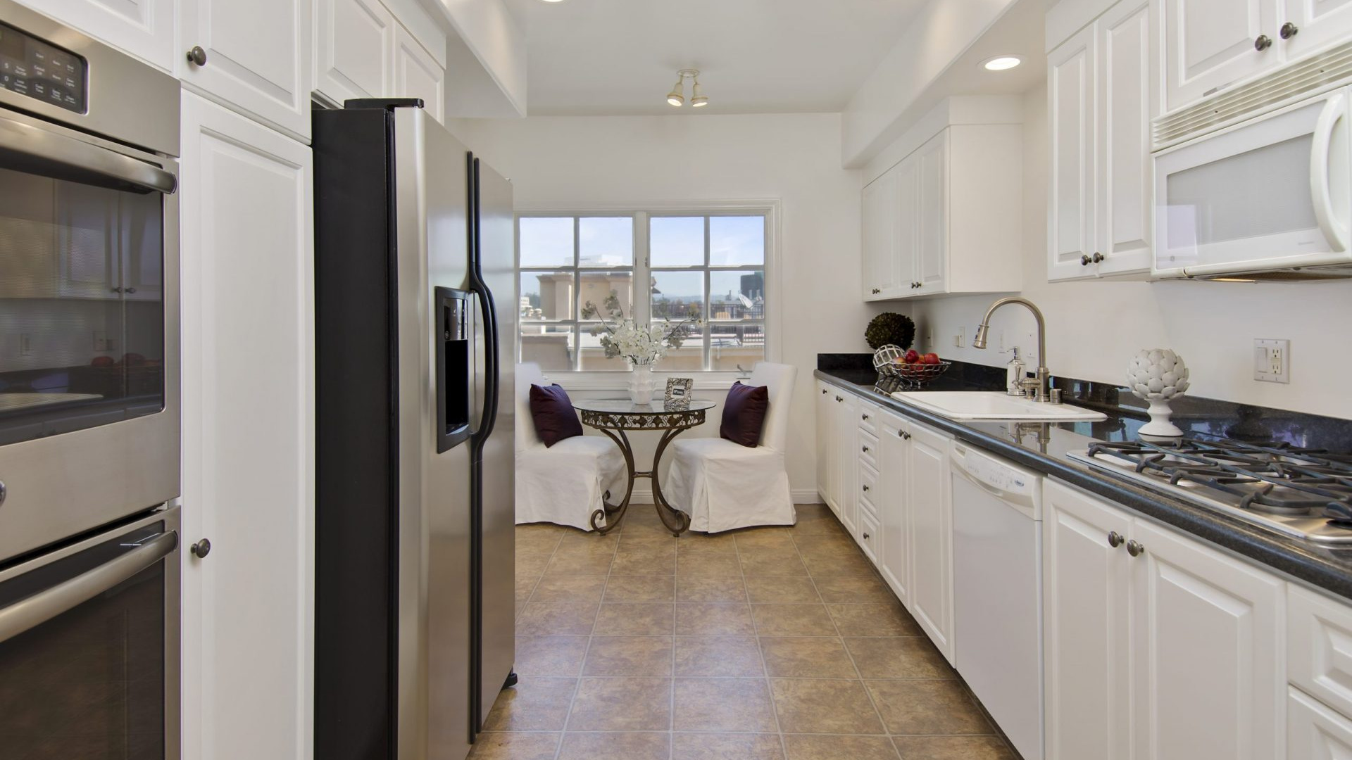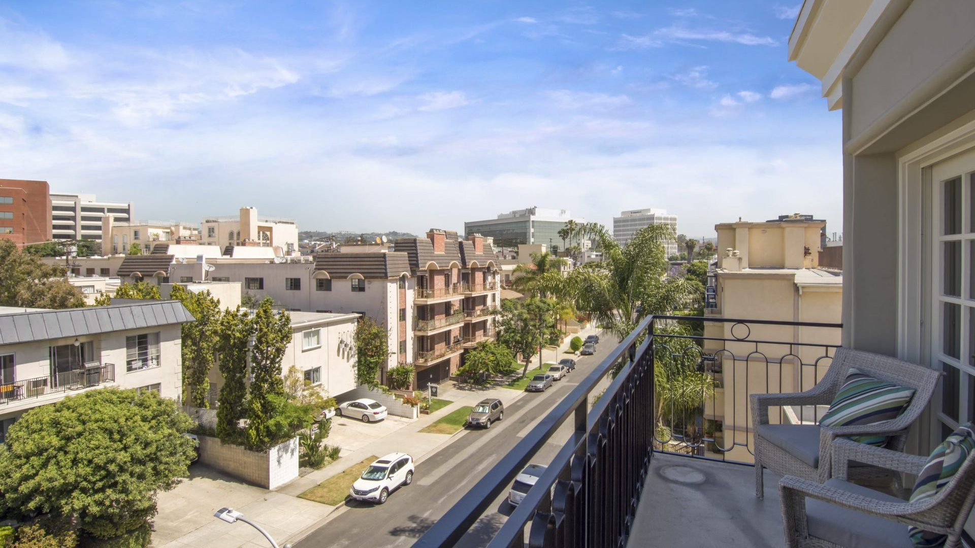 Gorgeous Penthouse Condo in the heart of Brentwood. Situated in the best location of an intimate and newly renovated complex, this 3 bedroom, 2.5 bath, single level unit has it all and is placed on one of the most beautiful streets around, just blocks from the coveted San Vicente coffee shops, boutiques and iconic restaurants. Front facing, with city and mountain views, and lots of natural light! With only 8 units in the building, this quiet and private condo features: A chef’s kitchen with granite counters, nice appliances, tons of cabinet space and a breakfast nook. Open Entertainers living area with Berber carpeting, crown moldings and a handsome fireplace that leads to a formal dining room with French doors. Superb master suite with a large walk-in closet and spacious marble master bath. Newer interior paint & recessed LED lighting. And two additional ample sized bedrooms with a private bath nearby. 2 nice sized tandem parking spaces are also included, and the complex has recently been painted and is extremely secure with elevator keyed entry. Enjoy Brentwood living at its finest.