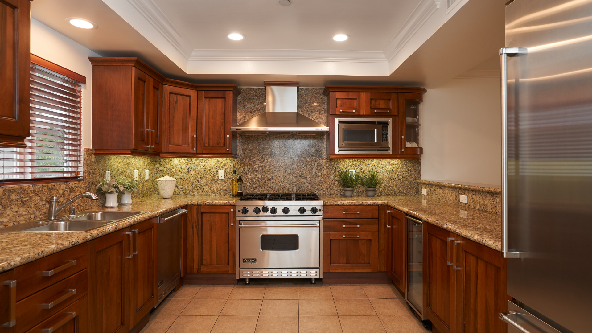 Rare chance to own in a coveted and prime Westwood complex on a quiet, tree lined street. Open & Spacious floor plan features 3 bedrooms, 3 baths, and 1,640 SQFT of living space. Enter the unit to find nice living room/dining room combo with attractive fireplace & balcony. Granite cooks kitchen has Italian wood cabinets with stainless steel appliances, wine cooler & built-in refrigerator. Master suite boasts his & her walk-in closets, mirrored wardrobe, and private master bath with dual sinks, tub, & separate shower. Additional features include wood flooring, new paint, newer carpeting, in-unit laundry area, recessed lighting & crown moldings. Mediterranean courtyard building has gated 2 car tandem parking, ample guest spaces, elevator, & EQ Insurance. Pets OK! Westwood Charter Elementary School. A short stroll to the new Google headquarters! Close to the Century City Mall, Beverly Hills, Westwood Village, UCLA, restaurants, & just a short drive to the beach, this is the one.