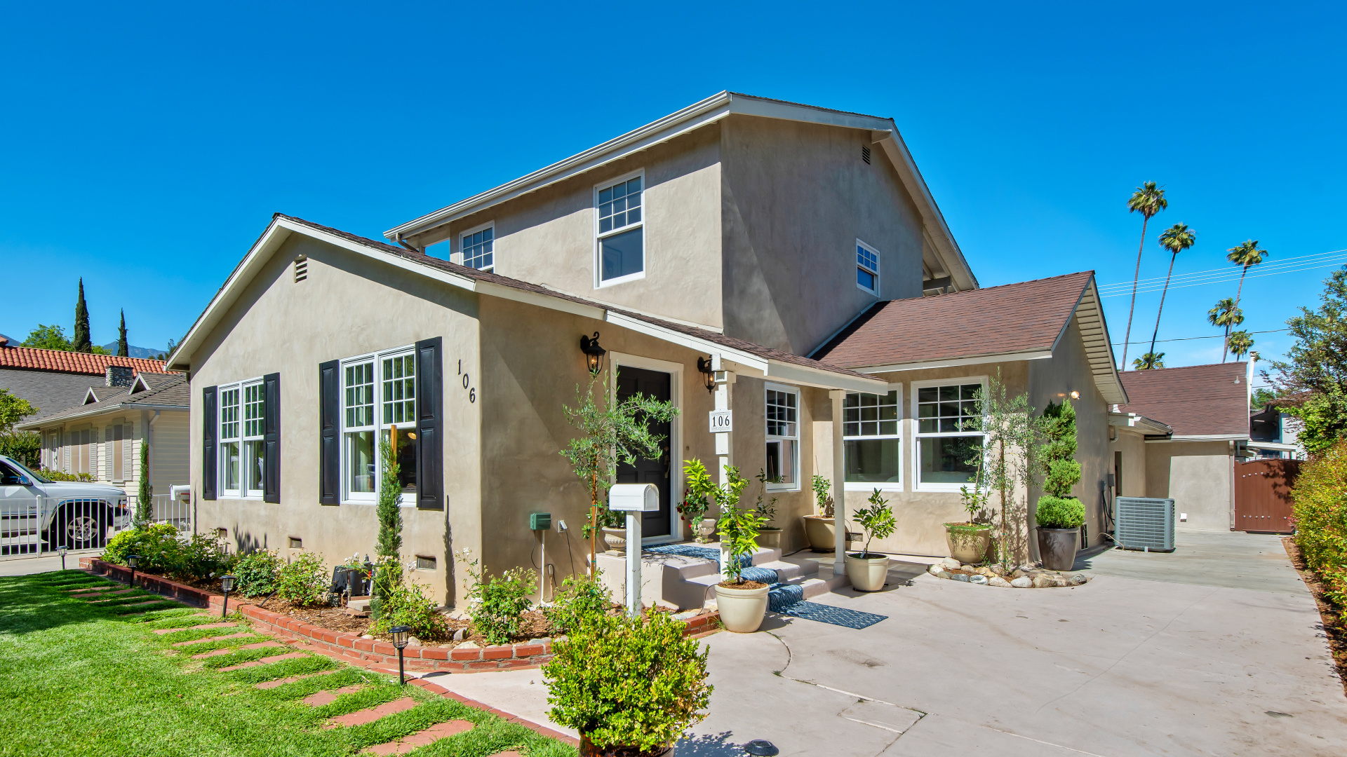 Tastefully updated two-story Pasadena Traditional in coveted CalTech neighborhood with incredible character and great curb appeal. Exuding warmth and a true sense of home, this amazing property features 5 bedrooms, 3 bathrooms, a great sized lot, and a fully permitted 1 bedroom, 1 bathroom, ADU unit that is currently rented – providing instant income to offset your mortgage. From the inviting landscaping, to the old world charm throughout the interior and exterior grounds, this one has it all! Beautiful light filled living room offers gracious living with gleaming hardwood flooring, crown moldings, and French doors leading to the formal dining room. An upgraded cook’s kitchen is ready for any home chef with Caesarstone Quartz countertops, glass tile backsplash, updated cabinetry, stainless steel appliances, designer tile flooring, and a quaint breakfast area. Flexible floorplan offers options for a master bedroom upstairs or down. 2 bedrooms down, 3 up – with one offering a relaxing balcony and mountain views. Rear yard features the perfect low maintenance entertaining space with room for pool, gated courtyard, detached 2 car garage, 2 car carport, and a long driveway with room for parking multiple cars. Additional amenities include central air & heat, many upgraded dual pane windows, and laundry area. Centrally located near Old Town, shops, restaurants, coffee houses, parks, Colorado Blvd., and Freeways, this quintessential Pasadena home is truly a rare offering.