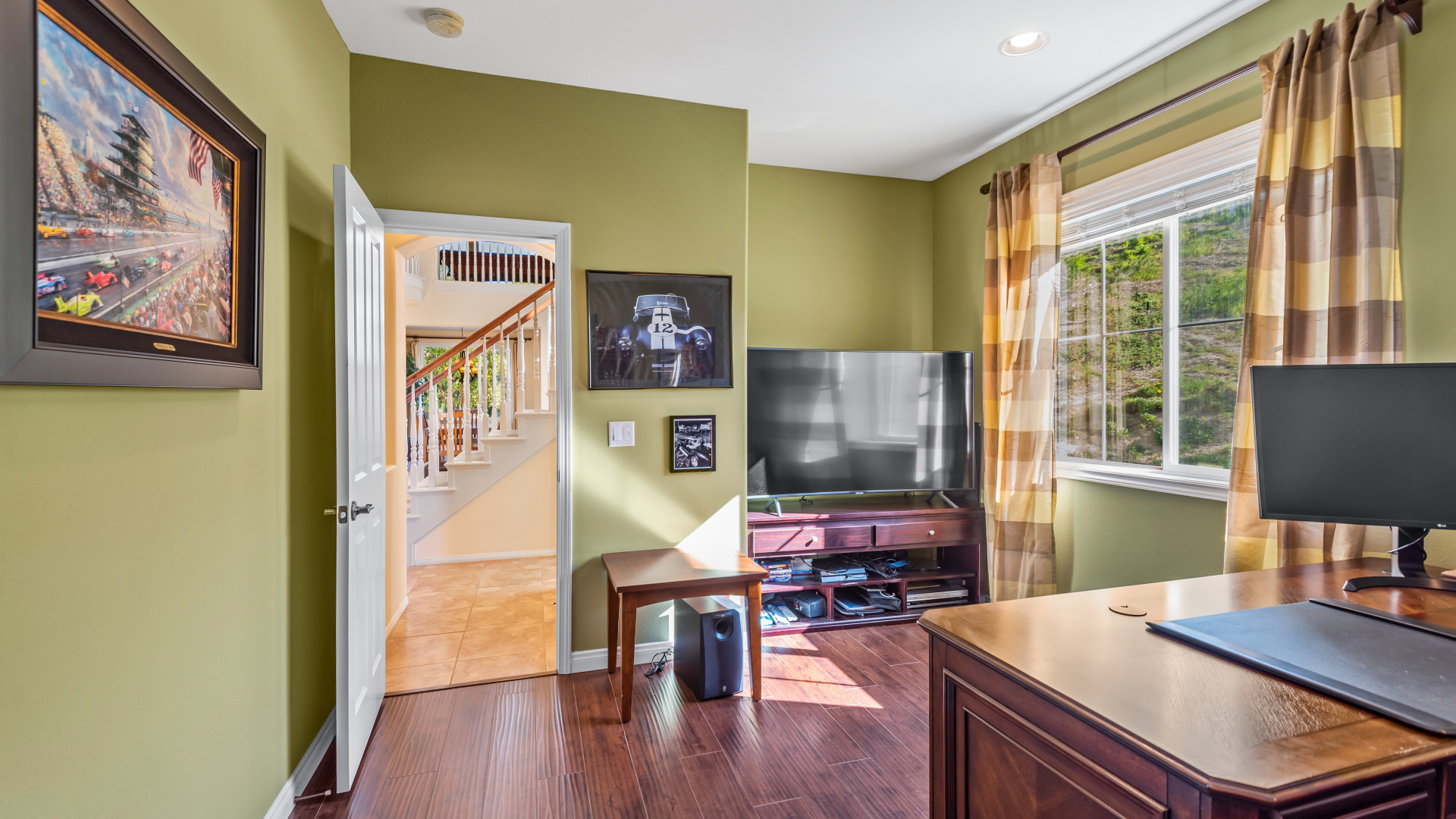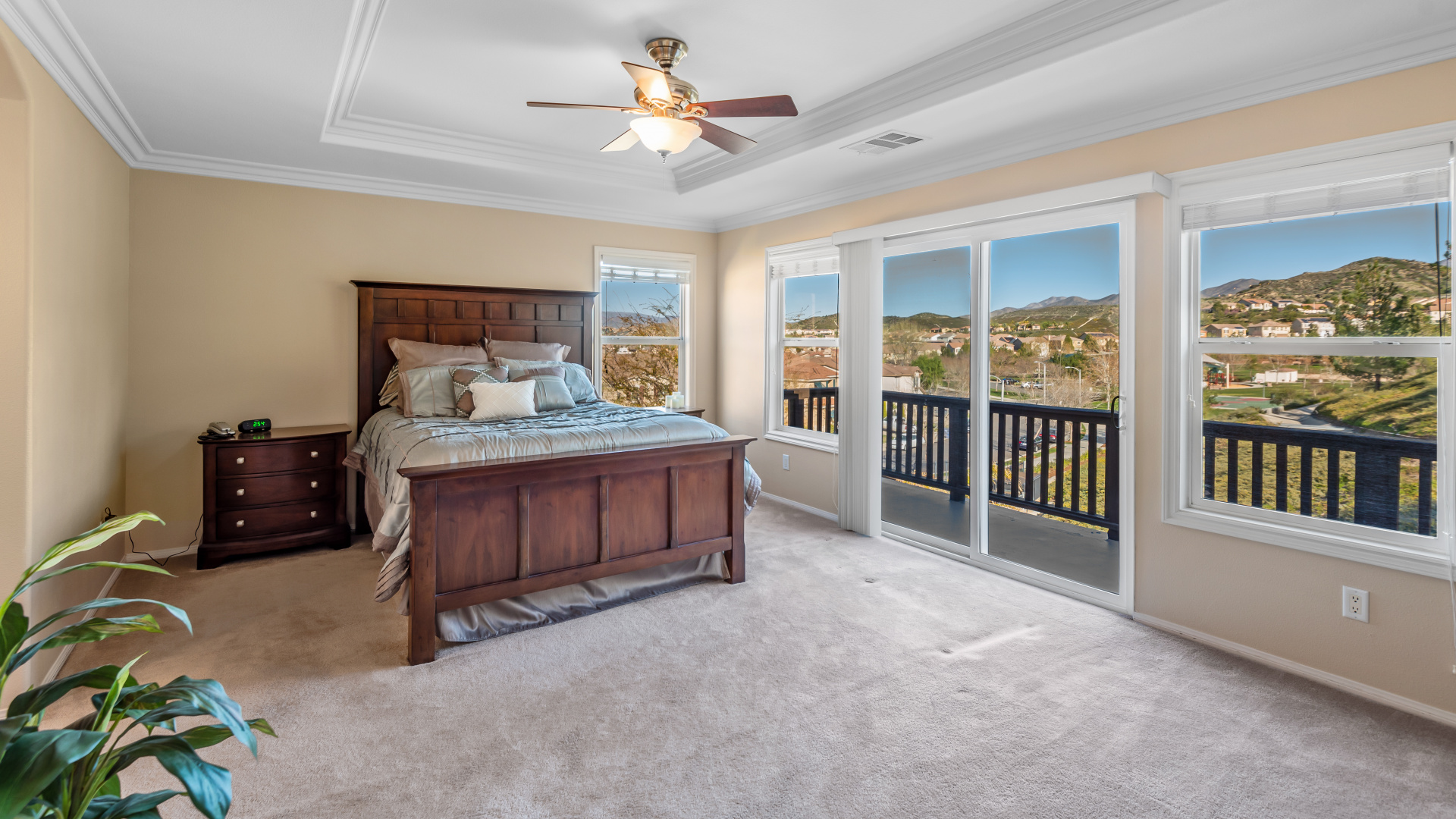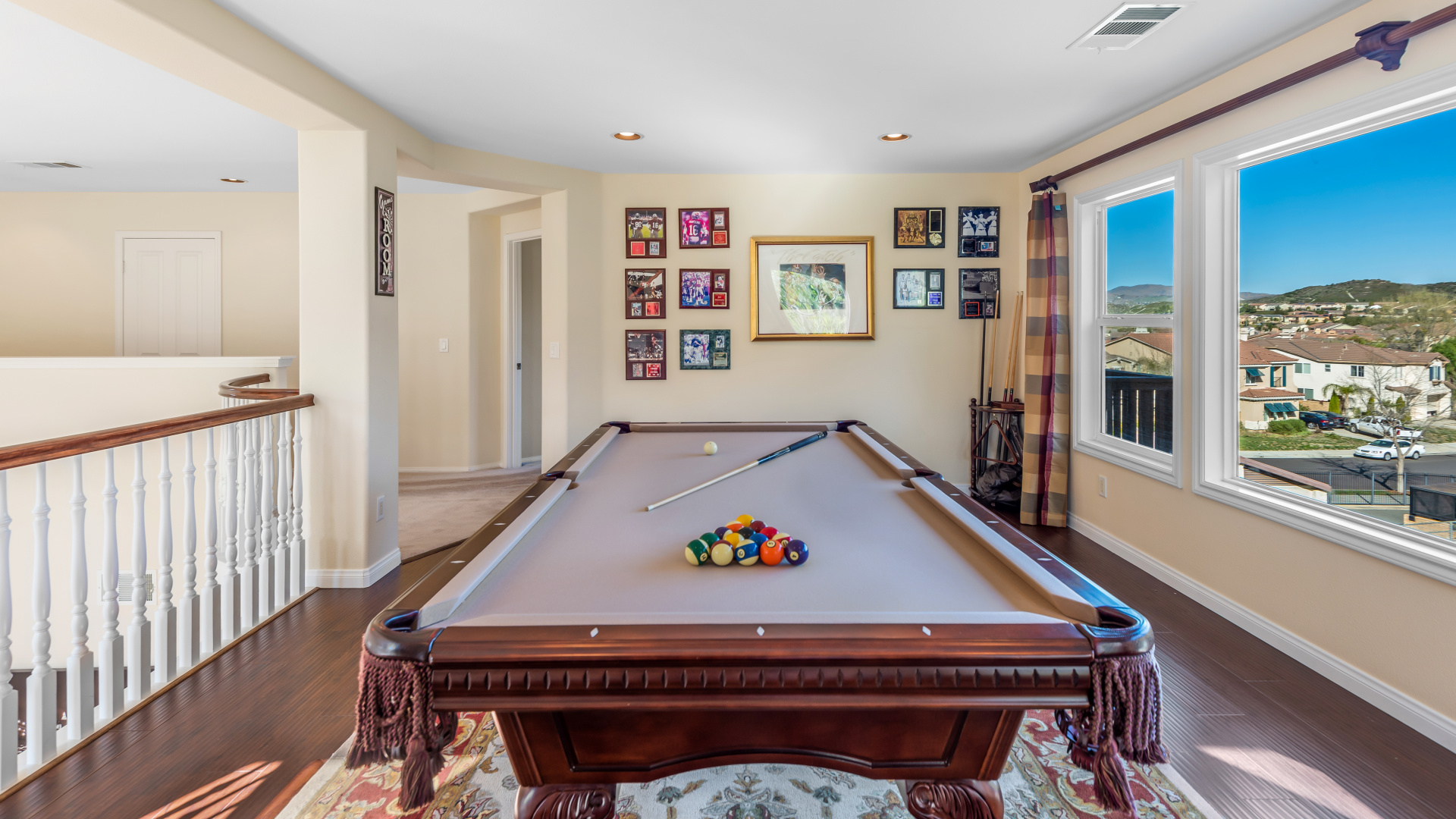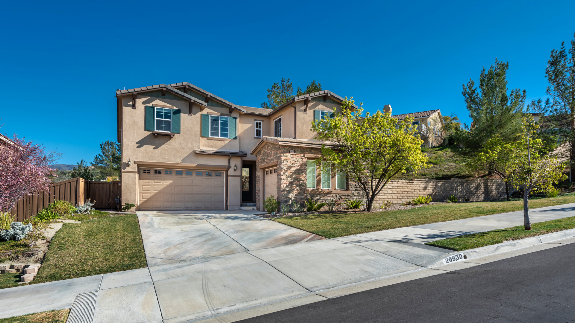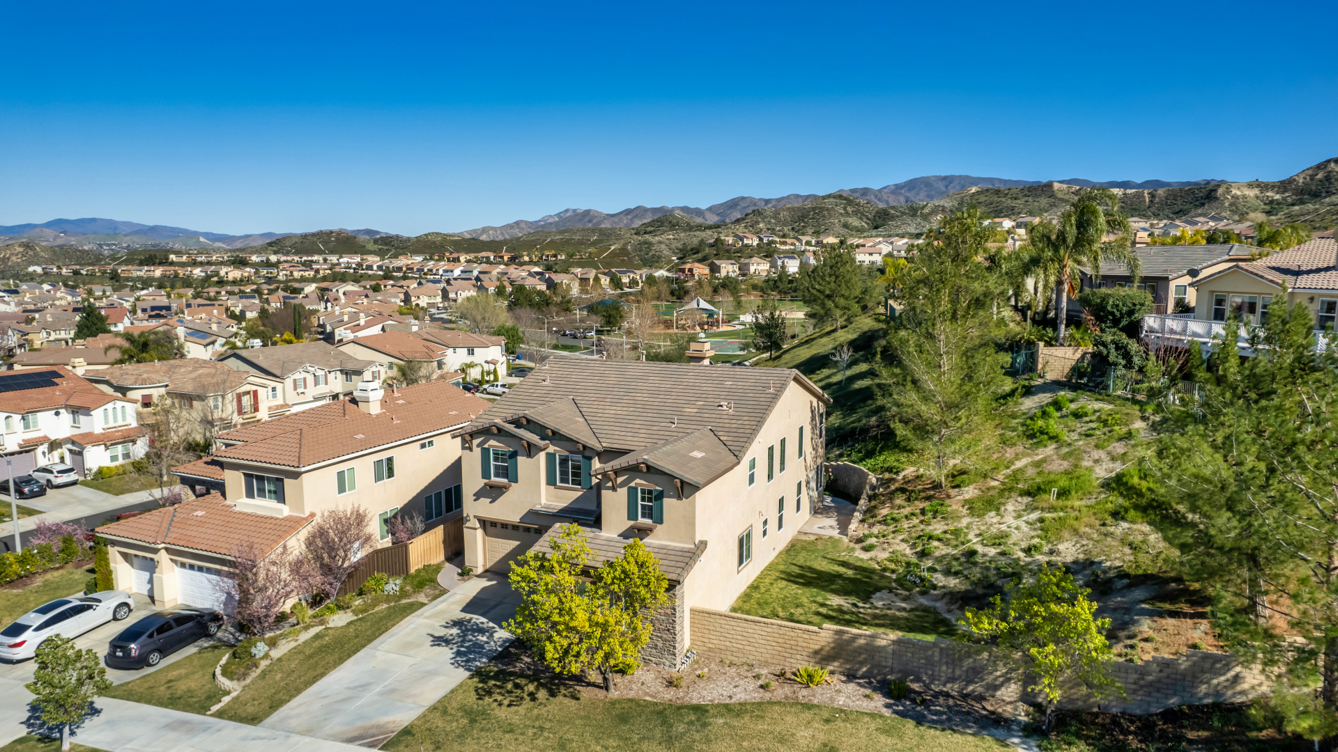 Fabulous Canyon Country view home in coveted Fair Oaks Ranch Community. Ideally set on a quiet street in the highly sought-after Mayfair tract, this spacious and bright 5 bedroom, 3 bathroom property, plus loft, features 3,313 SQFT of living space on a large 12,975 SQFT lot, a 2 car garage with direct entry, and a separate 1 car garage which could also serve as a great bonus room, home gym, or studio. The open and super functional floorplan boasts soaring 2 story ceilings with tons of natural light, a wonderful living room, and a formal dining area with adjacent wet bar area. A cozy fireplace warms a large family room that overlooks a cook’s center island kitchen with granite counter tops, built-in stainless steel appliances, tons of cabinet space, a pantry, breakfast area and bar. Pool table sized upstairs loft is perfect for a game room or home media area. The primary suite features crown moldings, a view balcony, his & her walk-in closets, and a huge en suite bathroom with dual vanities, spa tub and separate shower. All upstairs rooms have views and there is one bed/bath on the main floor that could be used as a home office. Relaxing rear yard is perfect for entertaining and features a large patio plus a separate grassy area backing to a private hill, with room for a pool and other landscaping or hardscaping opportunities. Low HOA Dues with amenities including 2 parks, highlighted by the expansive Fair Oaks Park with fabulous playground equipment, basketball court, and volleyball courts, a clubhouse, large Olympic sized pool area with BBQs, picnic areas, and a splash pad! Original owner. Close to award-winning public and private schools, great restaurants, shopping, grocery stores, entertainment, so many other activities, and with convenient freeway access, your picture-perfect home awaits at Beech Willow Lane.