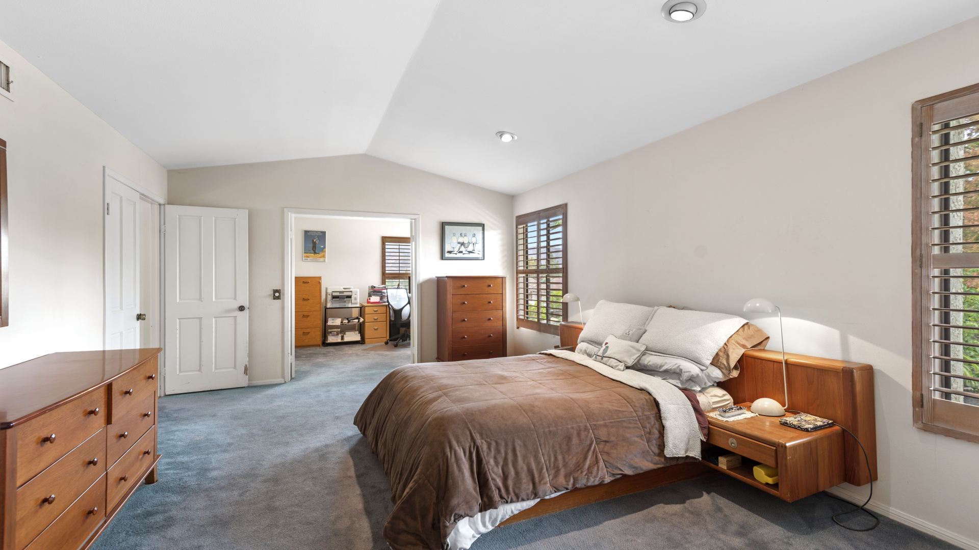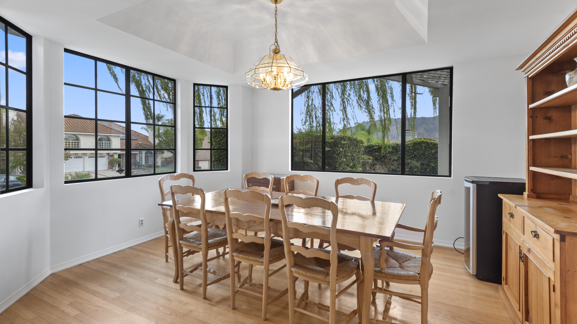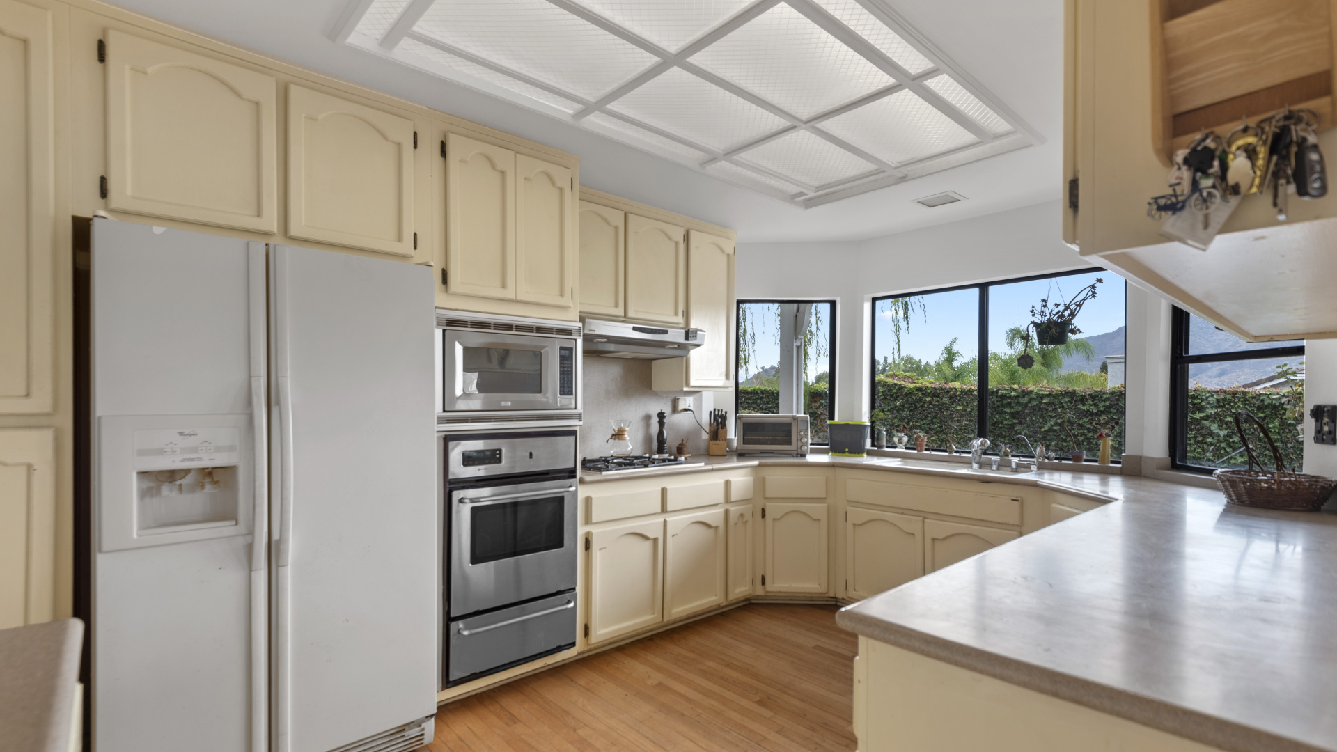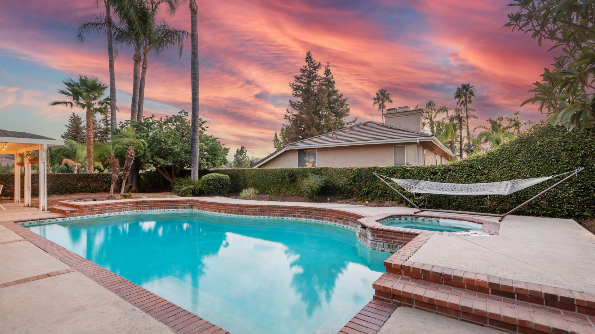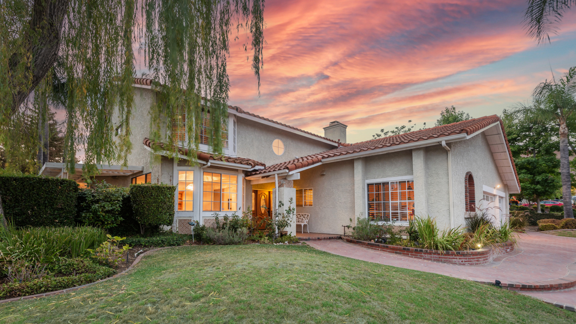 Two-story traditional pool home in highly sought after South Meadows location of Morrison Ranch Estates in Agoura Hills. Built in 1985, the home features 4 bedrooms, 3 bathrooms, 3,159 SQFT of living space, and a fabulous 10,927 SQFT flat corner lot, nestled above the street for added privacy and curb appeal. With a little TLC and updating, this could be your forever dream home! Living room with newer carpeting and fireplace, plus a true formal dine. Spacious eat-in Kitchen with bay window and skylight has great bones. Wood paneled family room with crown moldings, wet bar, fireplace and sliders to the relaxing backyard. Large primary suite has an attached office or sitting room as well as a grand walk-in closet and en suite private bath with dual sinks. Dine al fresco under the pergola in the Entertainer’s back yard on the extensive patio overlooking the pool, spa, and rolling mountain views beyond. Fruit bearing trees include apricot, fig, and loquat. Other amenities include a leased Solar System, spiral staircase, central air & heat, recessed lighting, smooth ceilings, and plantation shutters. Award winning Las Virgenes School District! Close to wonderful restaurants & entertainment, great shopping, hiking trails, parks, freeways, and just a short drive to Malibu’s famous beaches. This one is a true diamond in the rough and California living at its finest!