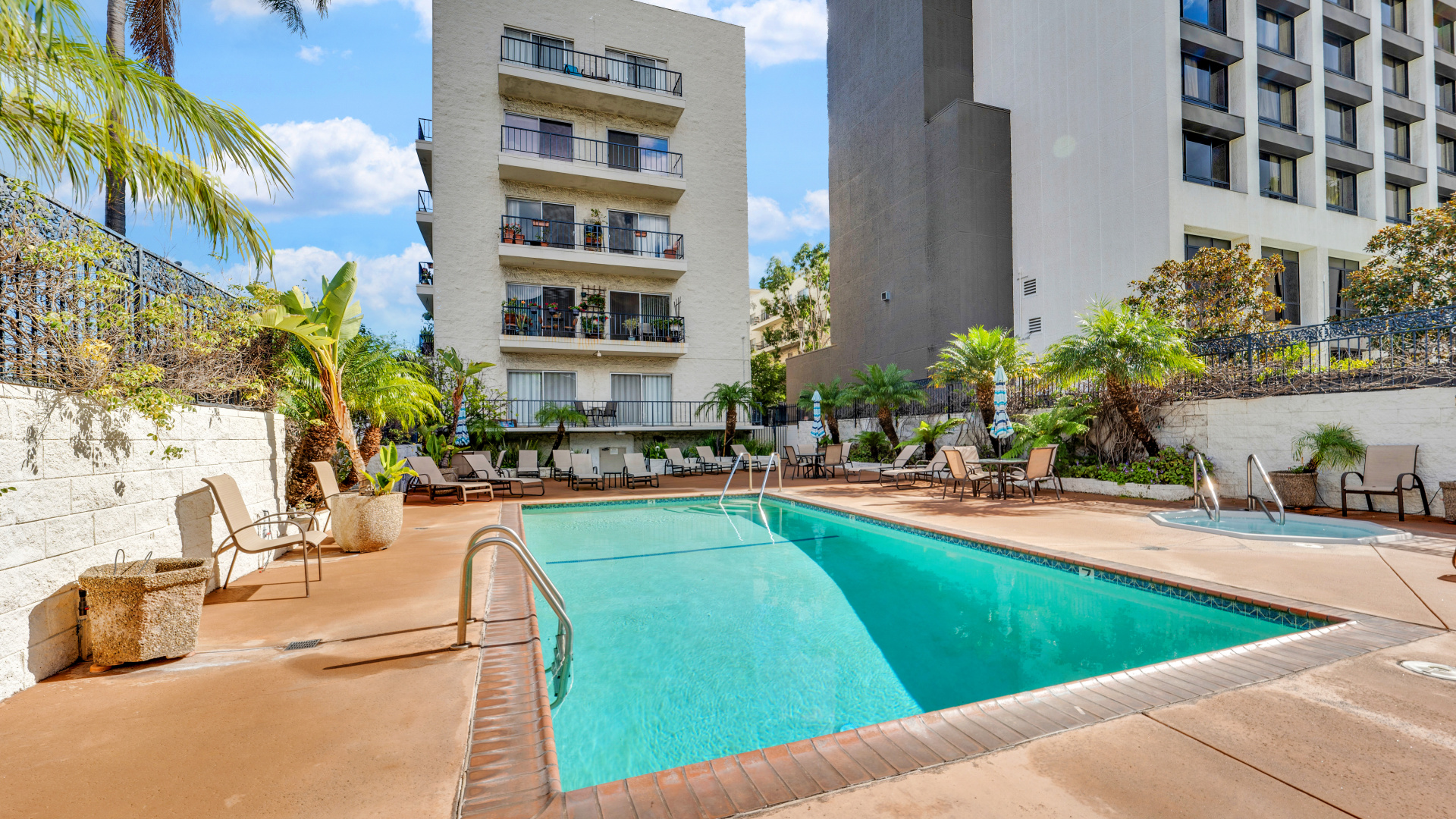 Prestigious and highly sought after view unit in coveted Beverly Towers. This prime Beverly Hills adjacent condo features an open floor plan with lots of natural light, 1 large primary bedroom, 2 bathrooms, and beautiful 4th floor views from multiple rooms and the long balcony, that include views as far as the iconic “Hollywood Sign!” Unit has neutral wood laminate flooring, a great living room and dining area, a bright kitchen, and a wet bar area. The bedroom also features a nice walk-in closet and an en suite bathroom. Resort style complex includes elegant marble and mirrored lobbies, large sparkling swimming pool & separate spa that are heated year round in a private setting, his/her saunas, equipped gym, and controlled access. Well run HOA has lower dues for its many amenities, sufficient reserves, plus E/Q insurance and an onsite resident manager available during the work week. Great location near Beverly Hills, Century City, Westwood, Culver City, West Hollywood, Hillcrest Country Club, great shopping on Rodeo Drive, Westfield Mall, restaurants & café’s on Pico and Beverly, multiple grocery stores, studios, Houses of Worship, and more! Canfield Elementary school district. Includes 2-car tandem subterranean parking with elevator access and a private storage locker. Perfect primary or secondary residence. With a little TLC and updating, this one will be a showstopper!
