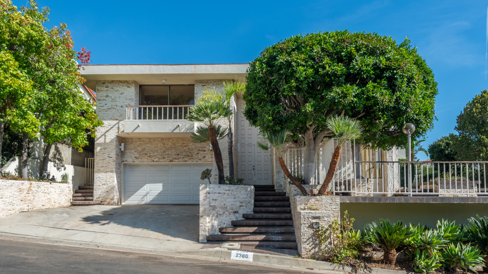 Magnificent opportunity to renovate, reimagine, or rebuild, in the prestigious Hollywood Hills community of Mt. Olympus. Located just minutes from the famed Sunset Strip towards the top of the enchanting ridge, the opportunities are endless and are awaiting your creative vision. Featuring 5 bedrooms, 4 bathrooms, 5,499 SQFT of living space, and an 8,000+ SQFT Lot, the abundance of natural light glistens when you first walk in the door to the spacious living room with soaring ceilings, as you gaze upon spectacular sunsets, the partial city and canyon views. Highlighted by two-story high windows flooding the home with natural light and that overlook the Entertainers pool and patio area. There are 4 fireplaces, a unique indoor water feature, plus a center island kitchen and a convenient family room. The flexible floorplan offers two en suite primary bedrooms, an expansive view loft, and a convenient downstairs bedroom with bath and a private sunroom/atrium – perfect for home office, gym, or studio. Direct access 2 car garage with ample and easy street parking make this a great find. This quiet and exclusive neighborhood offers its residents the convenience of proximity to all the fine dining, shopping, cafes, and nightlife on Sunset Blvd., and is also near Hollywood, West Hollywood, Downtown LA, the Valley, Burbank Airport, parks, hiking, and more! 2380 Venus Dr. awaits its magical transformation.