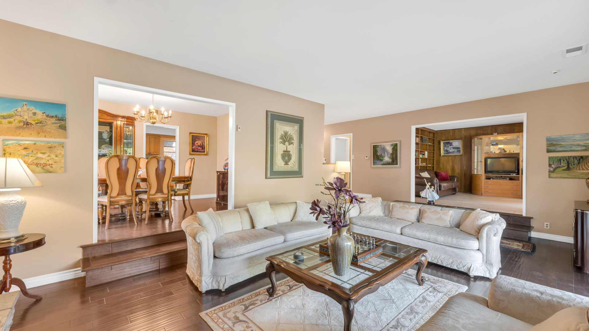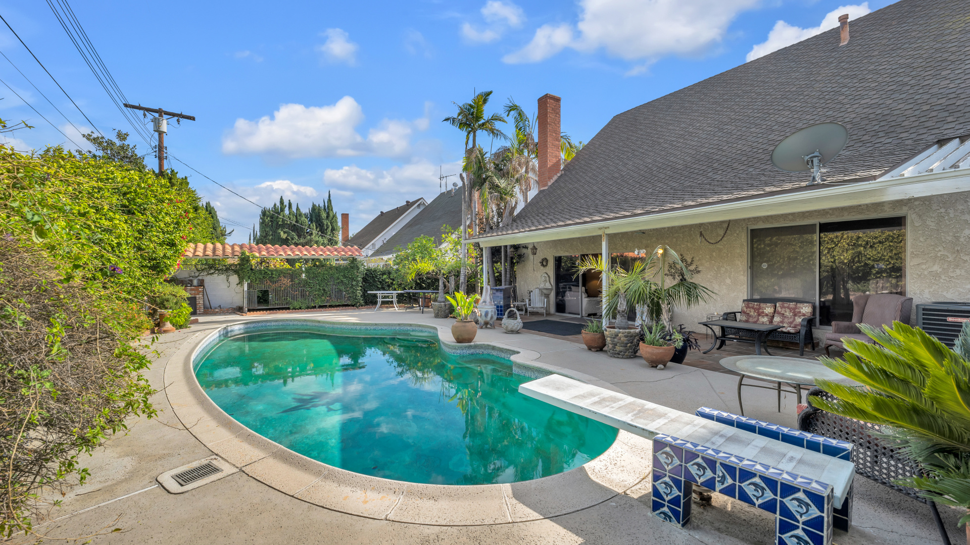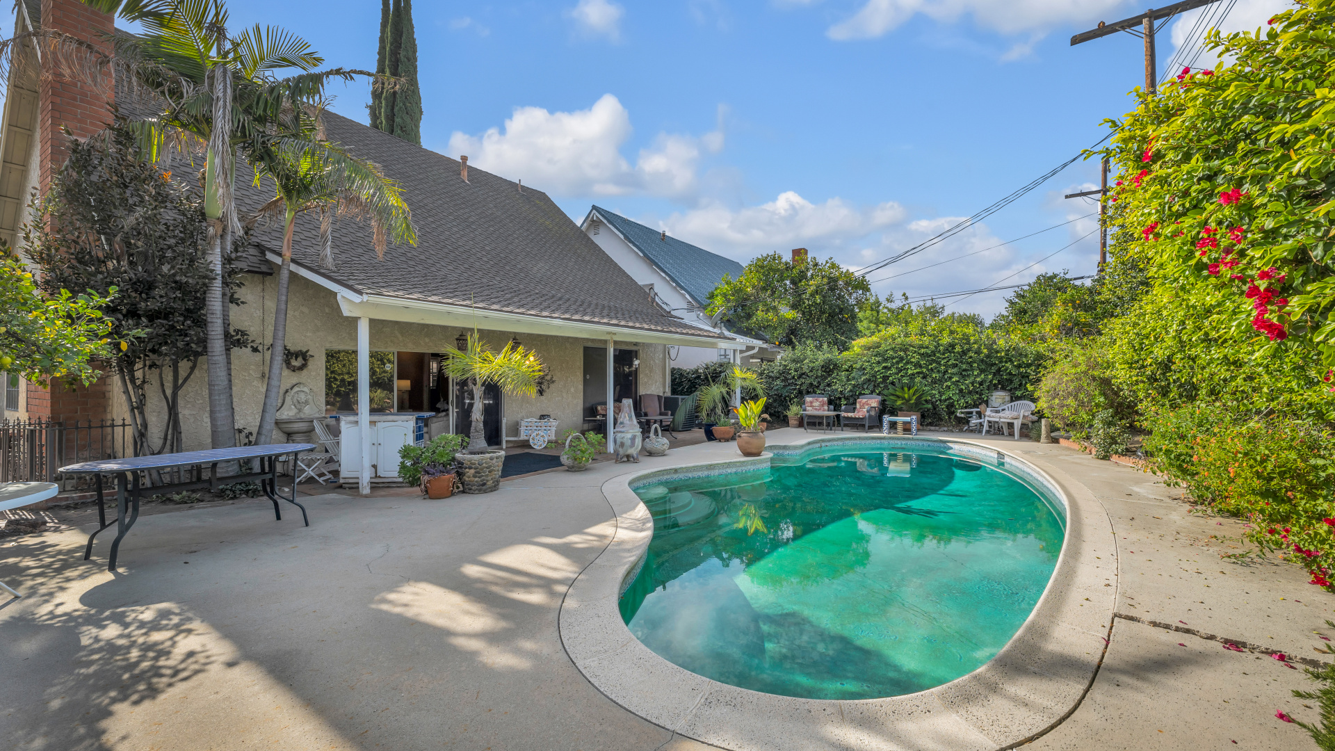 Incredible opportunity to own a home in one of the most sought after neighborhoods in Sherman Oaks. This 2 story traditional boasts 4 bedrooms and 3 bathrooms spanning over 2,520 SQFT of living space. On the first level you will find an open kitchen with granite counters, plenty of counter space and cabinets for storage, a formal dining room ideal for gatherings, an inviting step down living room with a charming fireplace, one bedroom downstairs which is perfect for guests or a home office, a beautifully remodeled bathroom with walk in shower, plus a den/study with access to the backyard which could also be a 5th bedroom. As you ascend to the 2nd level you are welcomed by an oversized primary bedroom equipped with an en suite bathroom, secondary bedrooms, a 3rd full bathroom, and plenty of storage space in the upstairs hallway. The backyard is an entertainer’s paradise providing plenty of space for fun and relaxation. There is a sparkling swimming pool, fruit trees, and a large, covered patio ideal for dining al fresco and enjoying the great Southern California weather. Additional amenities include direct access 2 car garage, central air & heat, recessed lighting, smooth ceilings, and nice tile and wood laminate flooring. Centrally located near public and private schools, Westfield Fashion Square, Houses of Worship, Los Angeles Valley College, Whole Foods, great local restaurants, shops, Orange Line, NoHo Arts District, major movie studios, convenient freeway access, and so much more!