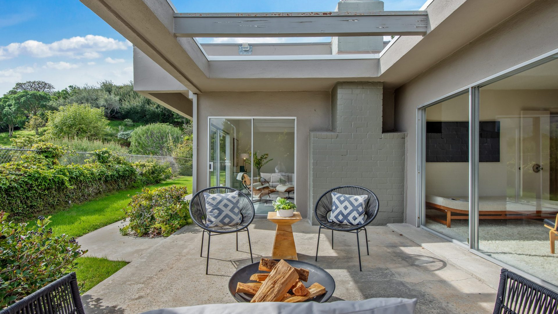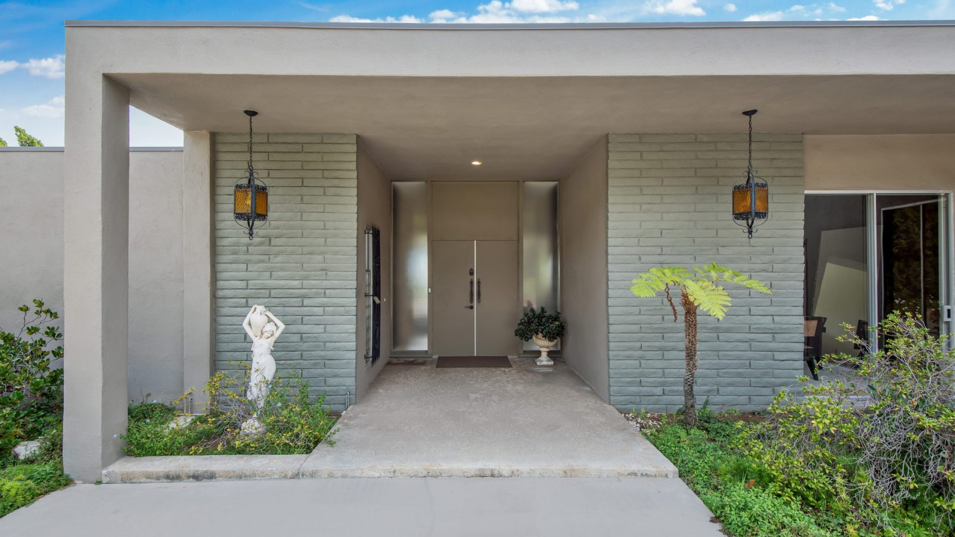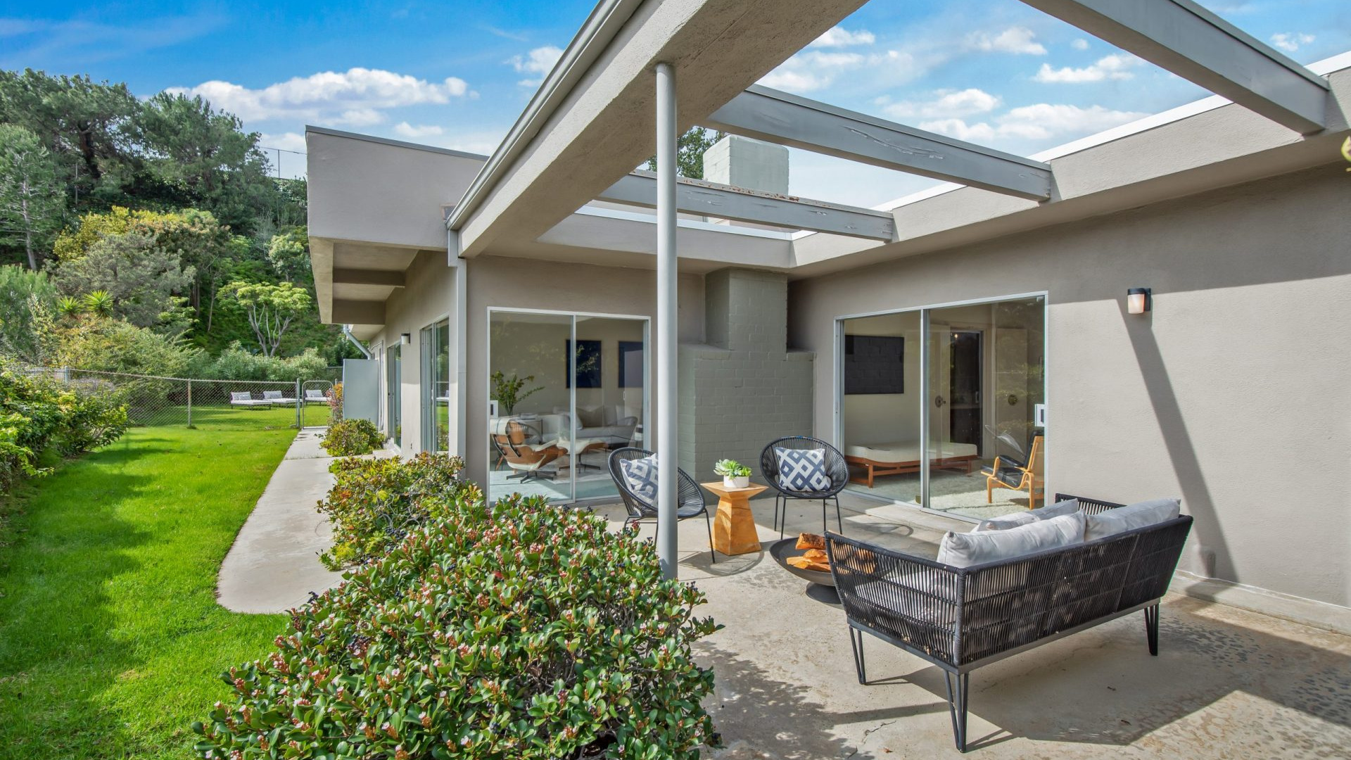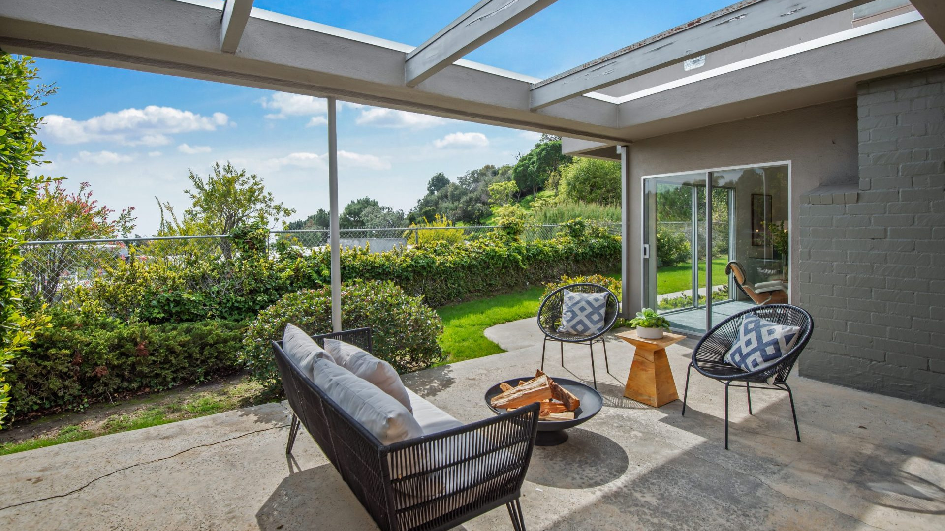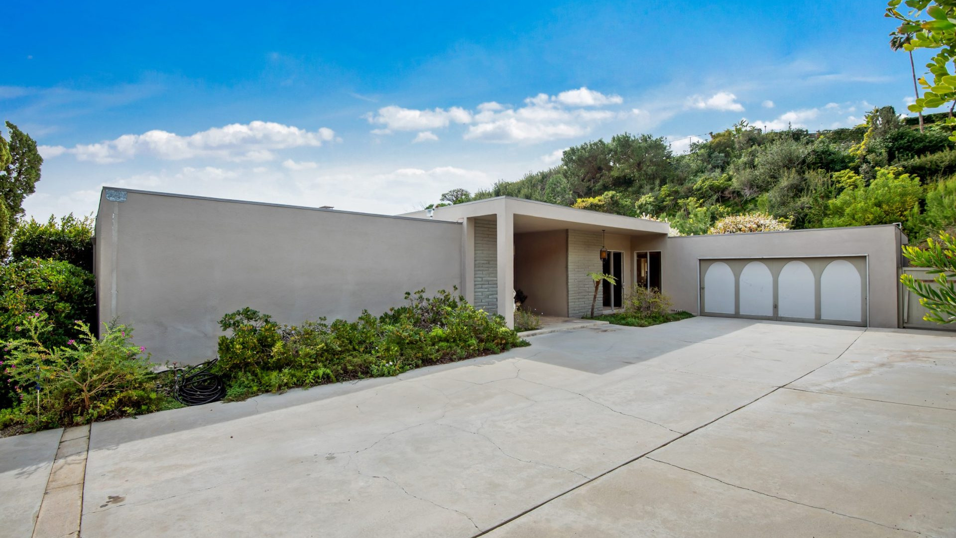 Situated in the highly coveted Pacific View Estates neighborhood of Pacific Palisades awaits this magical mid-century modern retreat. With endless potential, this home can be brought to its original glory or completely redeveloped. A grand driveway leads you to the estate, surrounded by lush landscaping for the utmost privacy. Fall in love with the bright and open floorplan allowing rooms to seamlessly flow together. Put your feet up in the living room accented by an inviting fireplace and sliding glass doors to the garden. The spacious master suite boasts space for a lounge with direct access to the yard, dual sinks, make-up vanity, grand shower and more. Escape to the expansive yard with beautiful greenery, ample space for dining or lounging al fresco, room for a pool, and tree-top & peek-a-boo ocean views. Additional features include large kitchen with breakfast nook, formal dining room, sophisticated guest bedrooms and a casual living space with bar. Relish the home’s prestigious Pacific Palisades location, just up the street from the ocean and only moments from the Getty Villa, local shops, restaurants and entertainment!