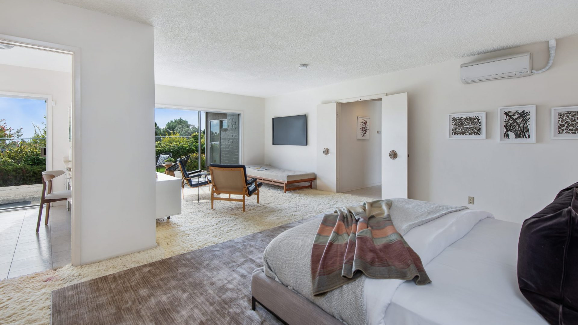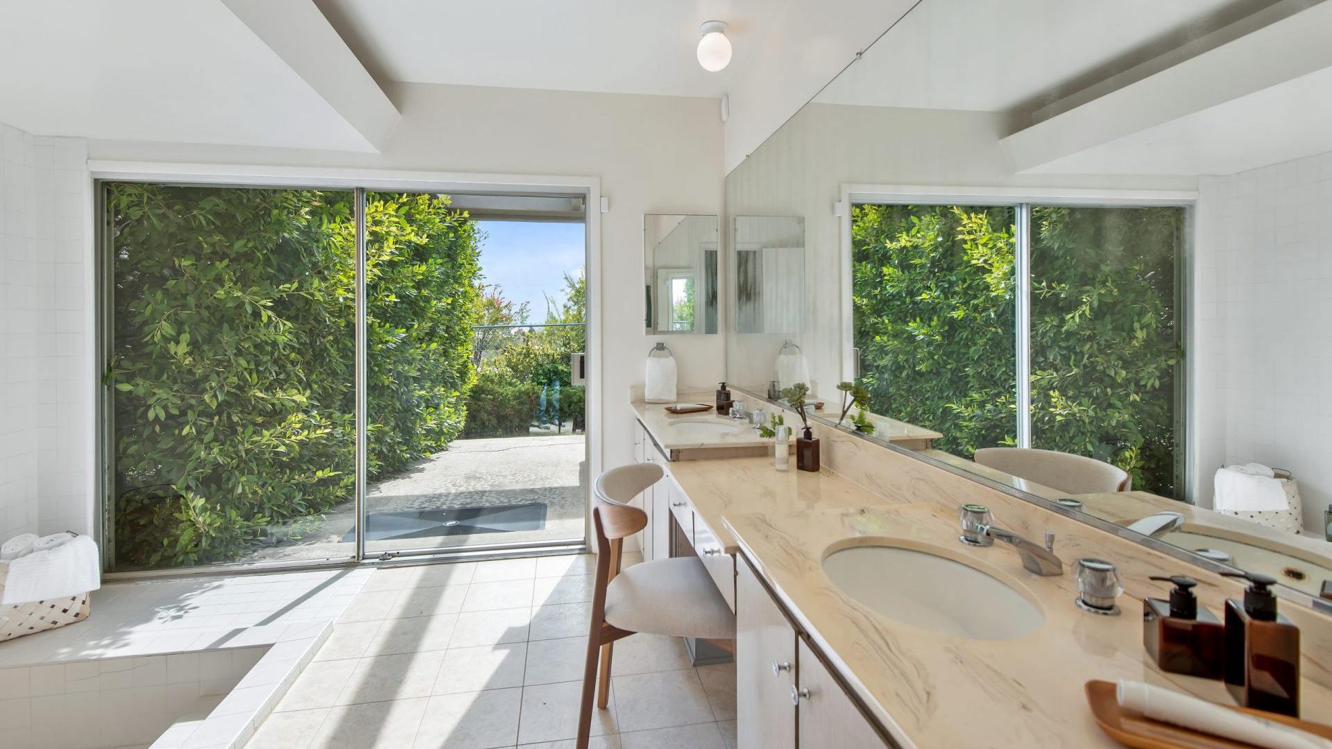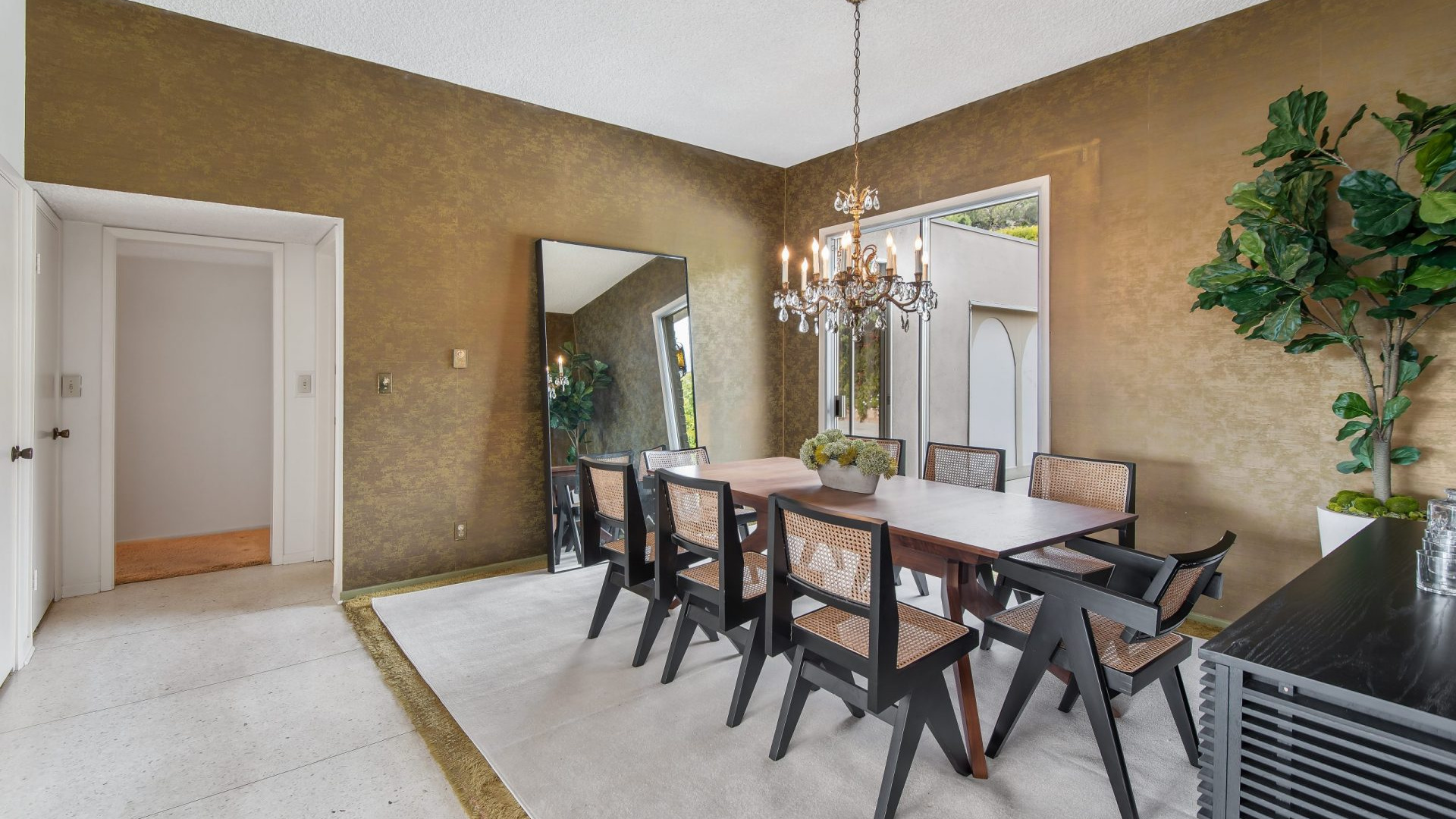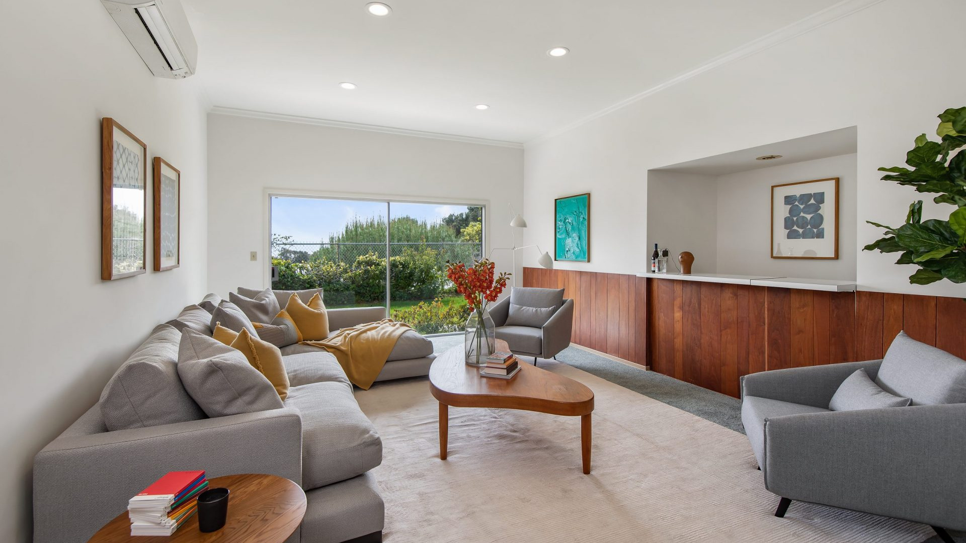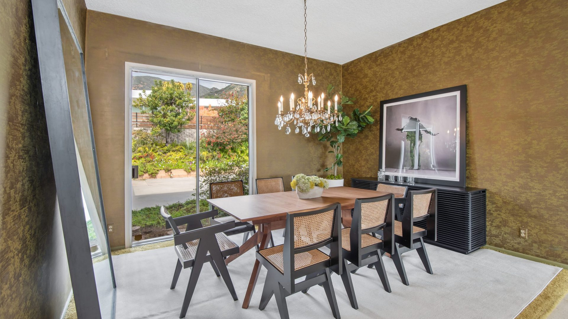 Situated in the highly coveted Pacific View Estates neighborhood of Pacific Palisades awaits this magical mid-century modern retreat. With endless potential, this home can be brought to its original glory or completely redeveloped. A grand driveway leads you to the estate, surrounded by lush landscaping for the utmost privacy. Fall in love with the bright and open floorplan allowing rooms to seamlessly flow together. Put your feet up in the living room accented by an inviting fireplace and sliding glass doors to the garden. The spacious master suite boasts space for a lounge with direct access to the yard, dual sinks, make-up vanity, grand shower and more. Escape to the expansive yard with beautiful greenery, ample space for dining or lounging al fresco, room for a pool, and tree-top & peek-a-boo ocean views. Additional features include large kitchen with breakfast nook, formal dining room, sophisticated guest bedrooms and a casual living space with bar. Relish the home’s prestigious Pacific Palisades location, just up the street from the ocean and only moments from the Getty Villa, local shops, restaurants and entertainment!