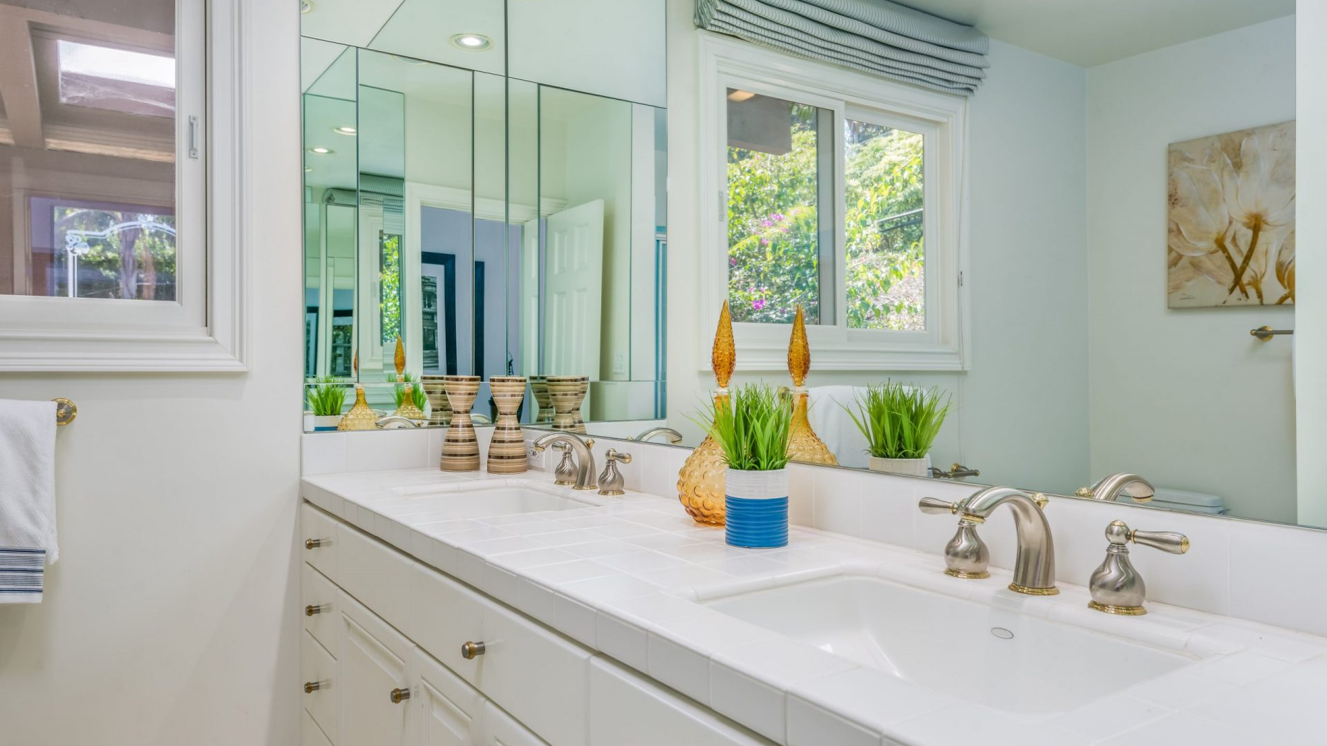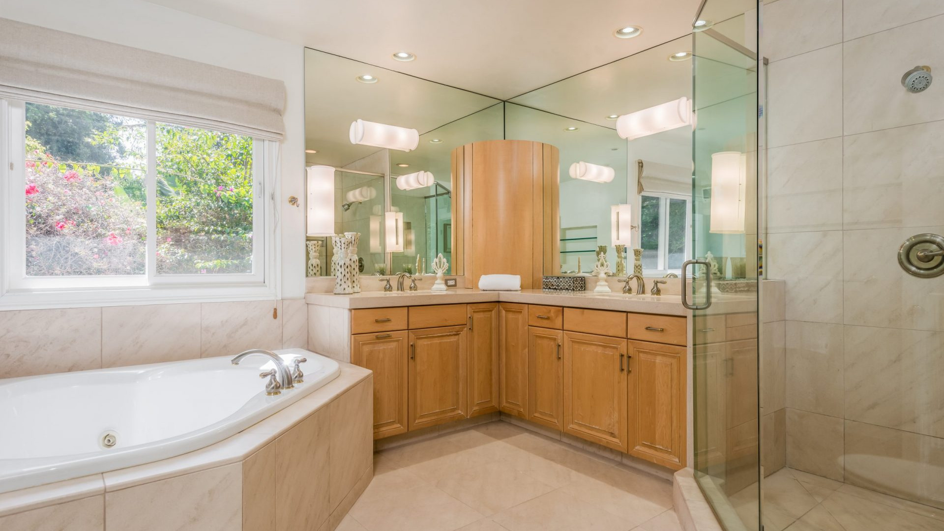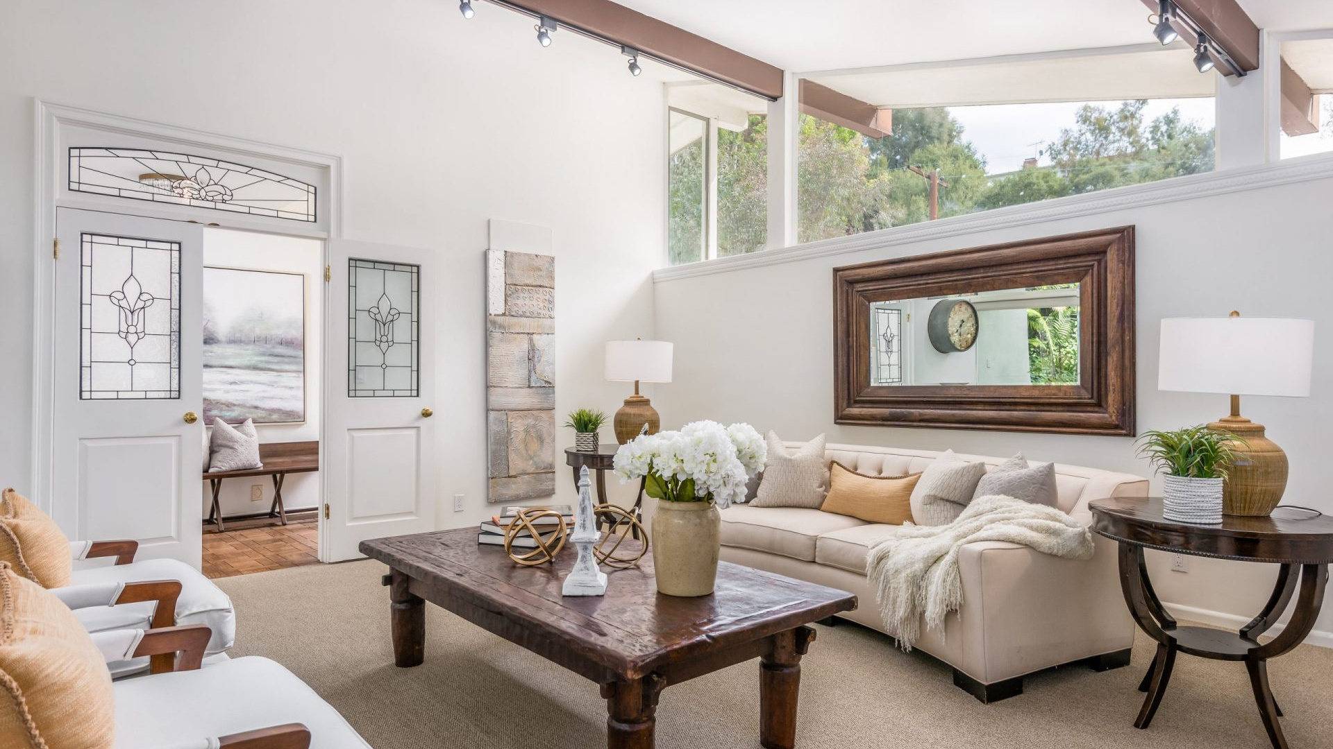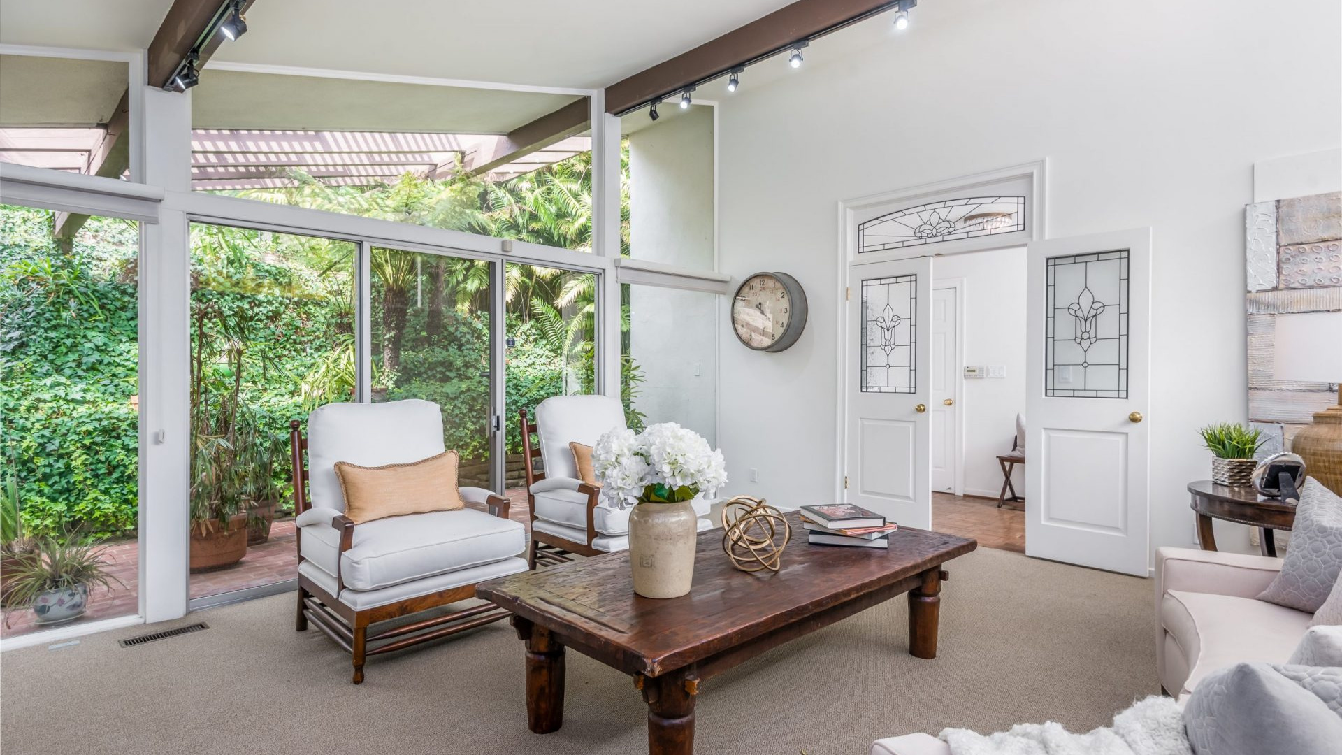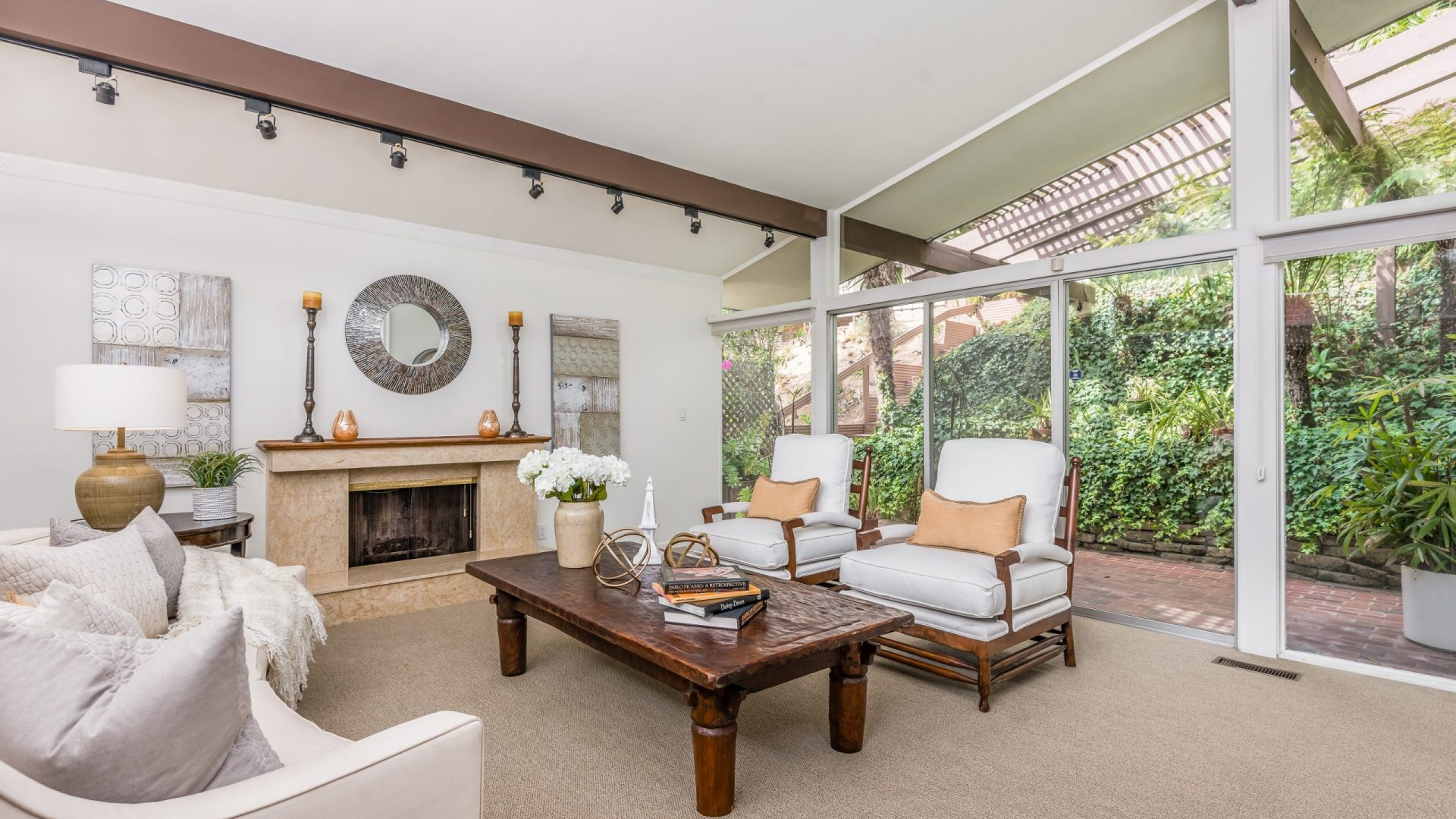 Mid-Century Contemporary located in Brentwood’s relaxing and peaceful Lower Kenter area, with incredible privacy and a great use of space. Beautiful greenery everywhere encompasses this updated retreat boasting over 3,300 SQFT of living space, 4 large sized bedrooms, and 4 charming bathrooms. Walk down the enchanting exterior red brick steps, surrounded by mature landscaping, as you step inside the front door of secluded entryway. Numerous windows and skylights fill this residence with natural lighting. Stylish true formal living room with fireplace, vaulted beamed ceiling, a separate dining room highlighted by wood floors, and a comfortable family room with fireplace. Cook’s kitchen boasts granite counter tops, tons of cabinet space, and stainless steel built-in appliances, including 2 wine coolers. Master suite features a sitting area, crown moldings, walk-in closet, and a private marble bathroom with dual sinks and spa tub. All secondary bedrooms are spacious and one is on the lower level – a nice place for a home theater/media room. Tranquil rear yard with patio/sitting area is perfect for entertaining and relaxing. Large workshop/storage room located under the house. Two car garage, plus a one car carport. Close to Entertainment, Fine Dining, Shopping, Sunset Blvd, The Beach, Venice, Santa Monica, UCLA & Westwood, Hiking, and conveniently located near major Freeways – while just a short drive from so many other attractions & hot spots. A truly rare offering.