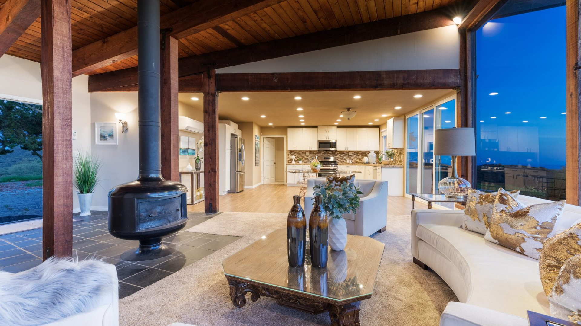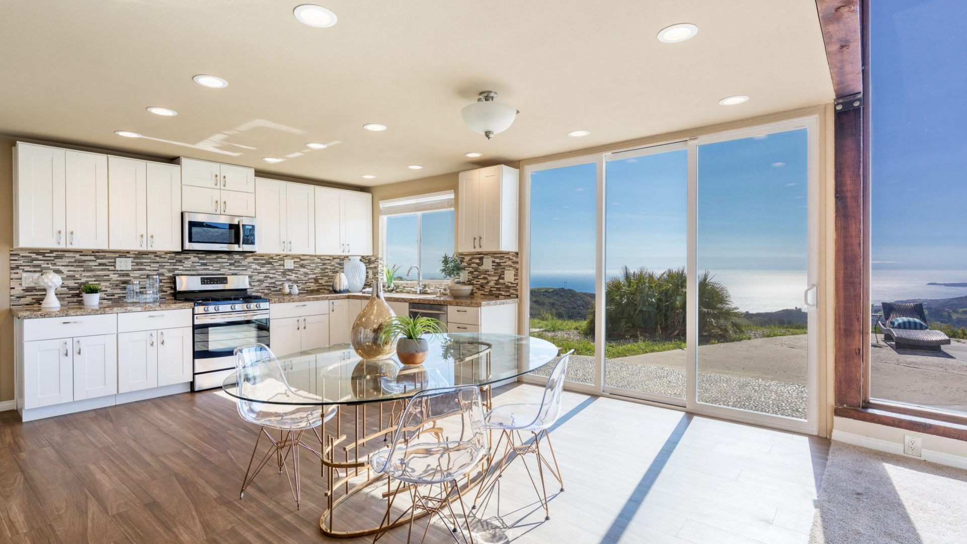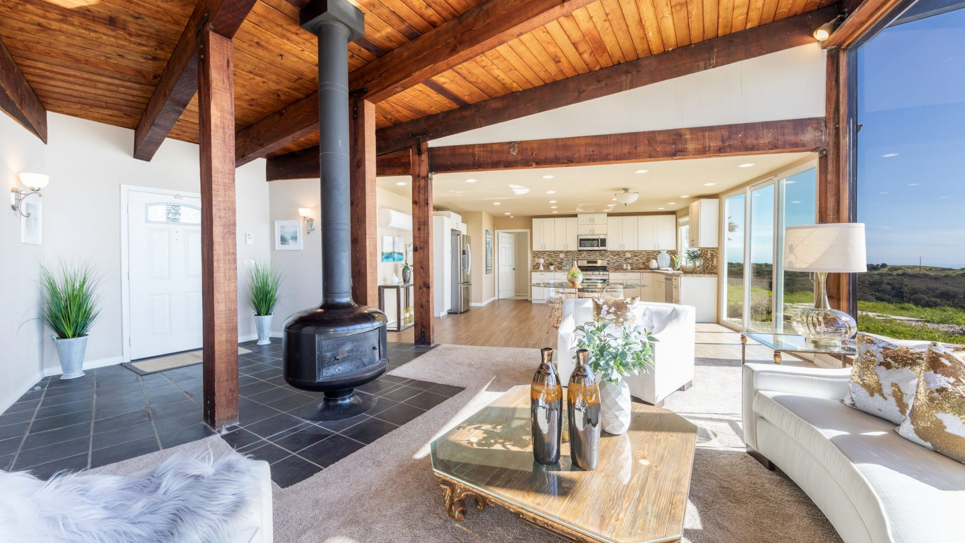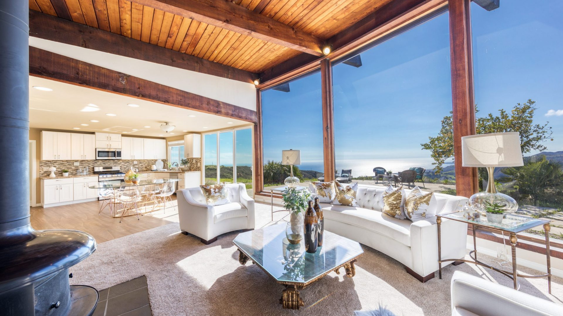 Unbelievable opportunity to possibly build & design your own private Topanga Estate! Over 3.7+ Acres of outdoor beauty & nature nestled in a magical setting. This truly could be a Developers Dream & is a very rare offering. Isolated retreat with absolutely soaring, unobstructed, mountain and ocean views for miles. Panoramic backdrop overlooking Malibu Lagoon, Pier, and Point Dume with sunsets that are purely breathtaking. Current home is recently remodeled & in pristine condition, but to possibly add SQFT or tear down & build from scratch, would take it to another level, one that would rival any of the best homes in this area.Currently as you enter, you will find a light filled open concept floor plan with floor to ceiling windows and majestic wood beams bringing the breathtaking Ocean and mountain views in. Remodeled kitchen features granite counter tops, deco tile backsplash, stainless steel appliances, and tons of cabinet space. Master suite boasts a walk-in closet and a private bath. Huge secondary bedroom has full hall bath, plus a large indoor laundry room. Other attributes include designer wood look tiles, plush carpeting, recessed lights and smooth ceilings that complement this move-in ready home. Energy saving designed Fujitsu split system air conditioning provides a comfortable indoor environment while being environmentally friendly. The edge of the property offers completely flat parking for tons of cars, fully completing this entertainer’s paradise. Zoned for horses, too, and situated within the Santa Monica-Malibu Unified School District. This home is the ultimate hide-away, but in close proximity to beaches, State Park hiking trails, PCH, Prime Malibu, and the heart of Topanga. Your own Santorini here in LA County.