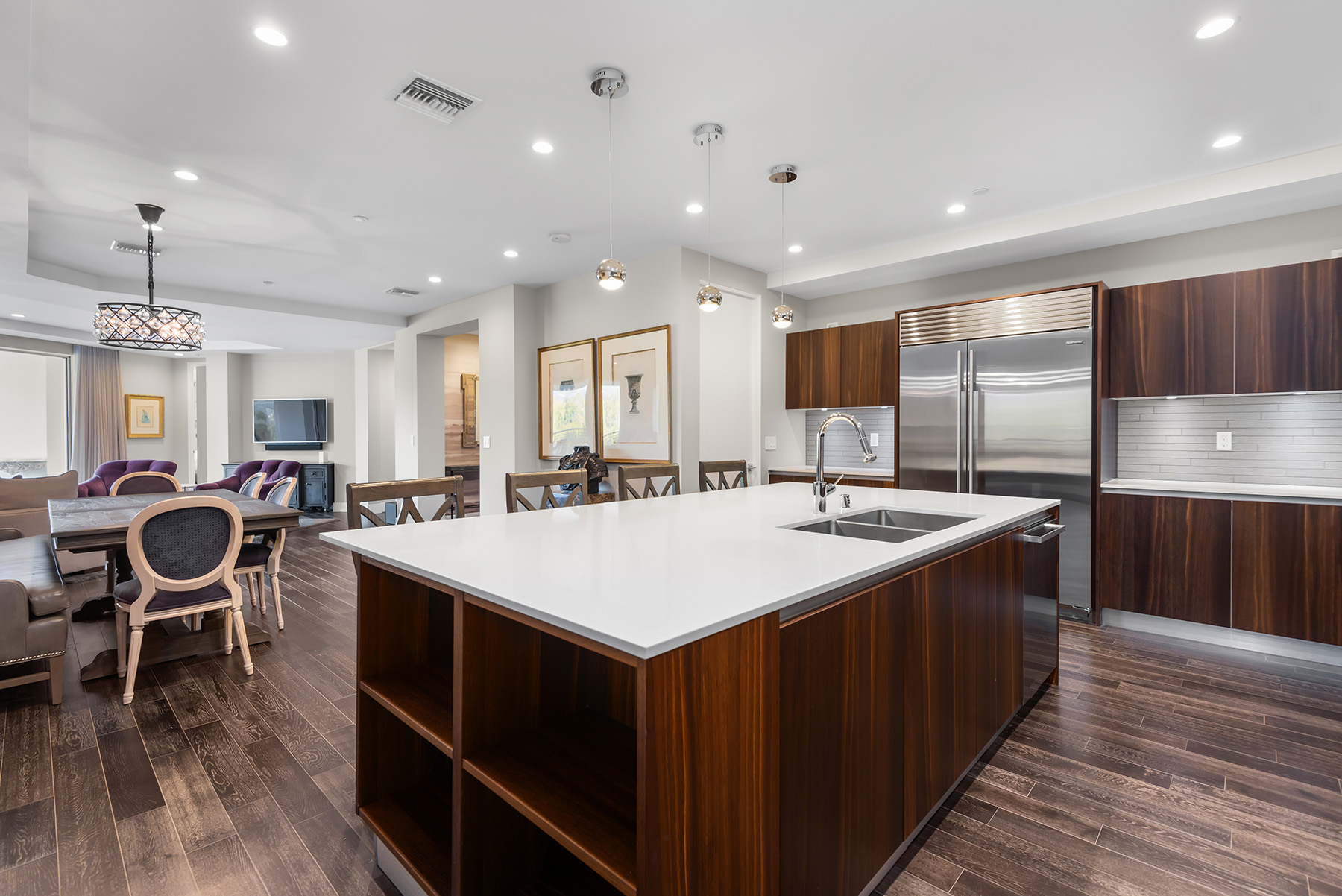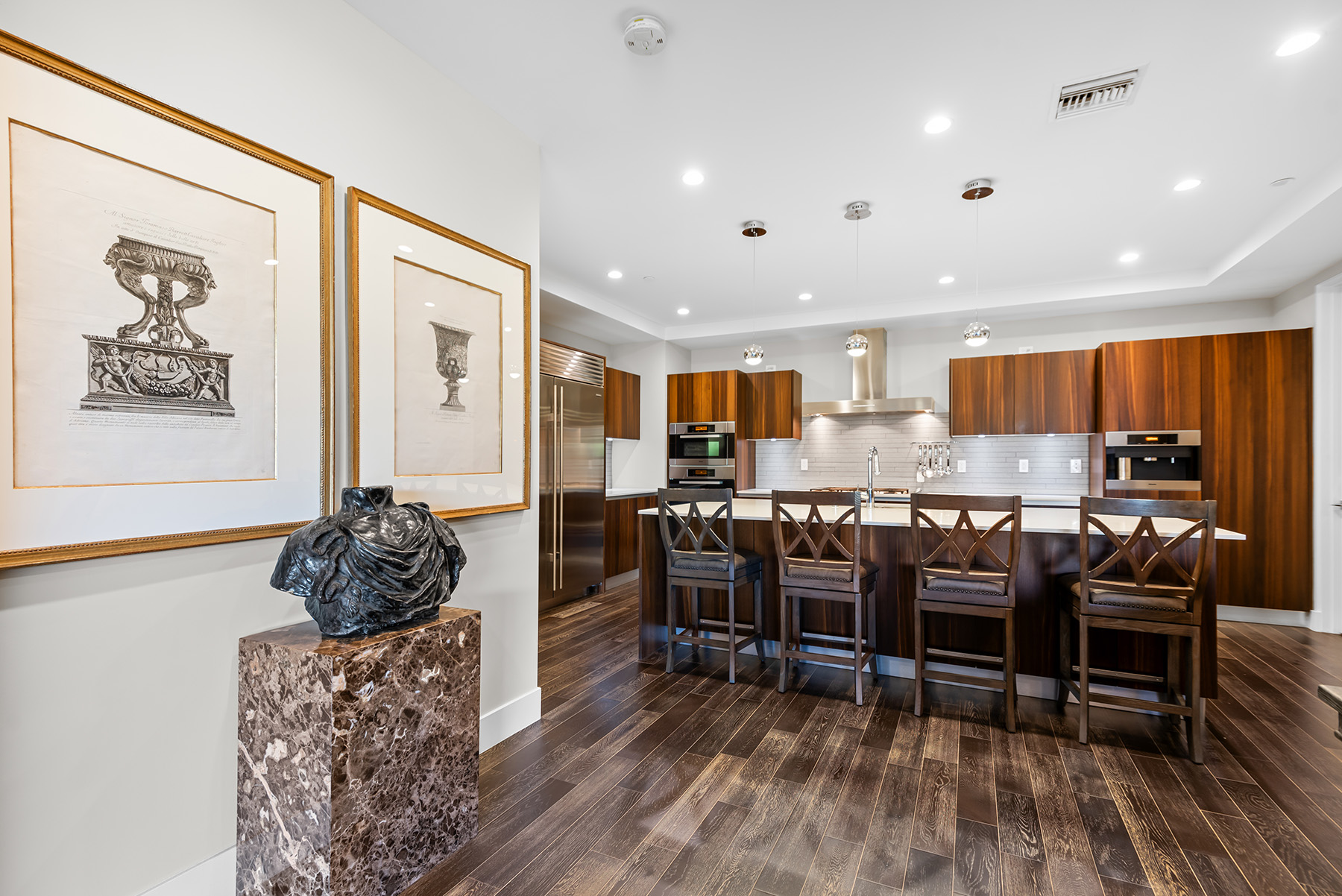 World class condo living at the exclusive 460 Palm Community in prime Beverly Hills, developed by ETCO Homes. Set on one of 90210’s gorgeous and tranquil tree lined streets, this home is the epitome of luxury and elegance. Encompassing 1,950 SQFT, this 2 bedroom, 2.5 bathroom residence seamlessly blends sophisticated design with an open concept layout. The gourmet chef’s kitchen is a culinary masterpiece, outfitted with premium Miele and Sub-Zero appliances, custom imported European style cabinetry, separate laundry room, a vast pantry, and an expansive Caesarstone island overlooking the main living area and balcony – a perfect layout for entertaining! This stylish unit offers two spacious full en suite bedrooms, an expansive primary suite offering his & hers walk-in closets, and a spa like bathroom with soaking tub, separate shower, and dual sinks. There is a generous sized private patio with multi-slide disappearing doors offering a ‘zero edge’ experience, as it overlooks lush foliage and breathtaking views of the hills, in a picturesque setting for alfresco dining and the ultimate in relaxation. This timeless and distinctively designed complex offers 24 hour concierge, including video surveillance for added security and peace of mind, newly renovated fitness center, lounge/conference room, courtyard, 2 side by side parking spaces, guest parking, and private storage room. Just a short stroll to all that Beverly Hills has to offer including the finest high-end stores, incredible dining and cafes, Wallis Annenberg Center for the Performing Arts, Civic Center, Beverly Hills Hotel, Sunday Farmers Market, and located in the Beverly Hills Unified School District! A true modern masterpiece delivering an unmatched lifestyle.