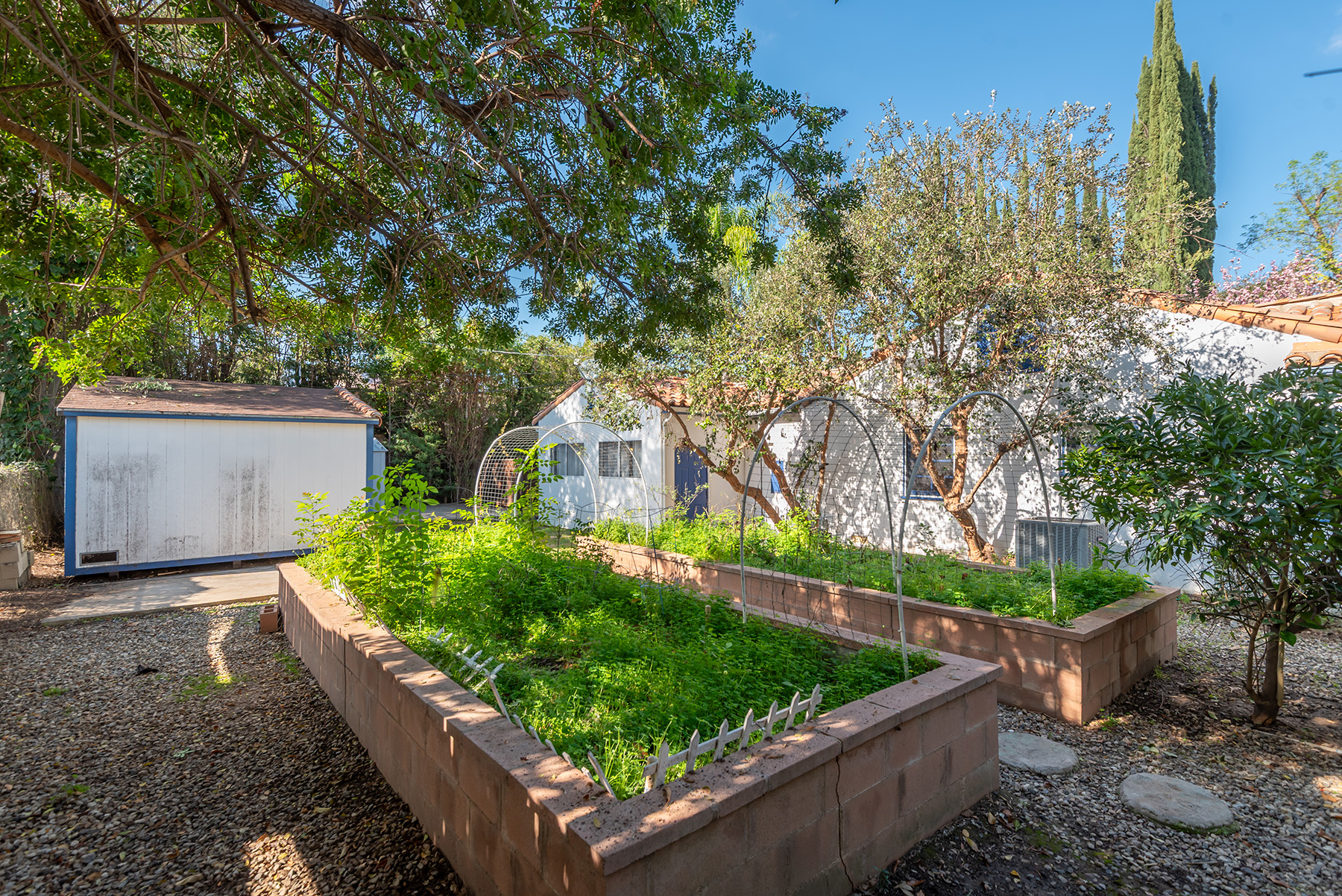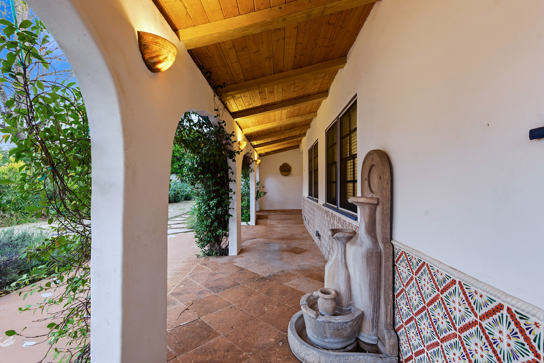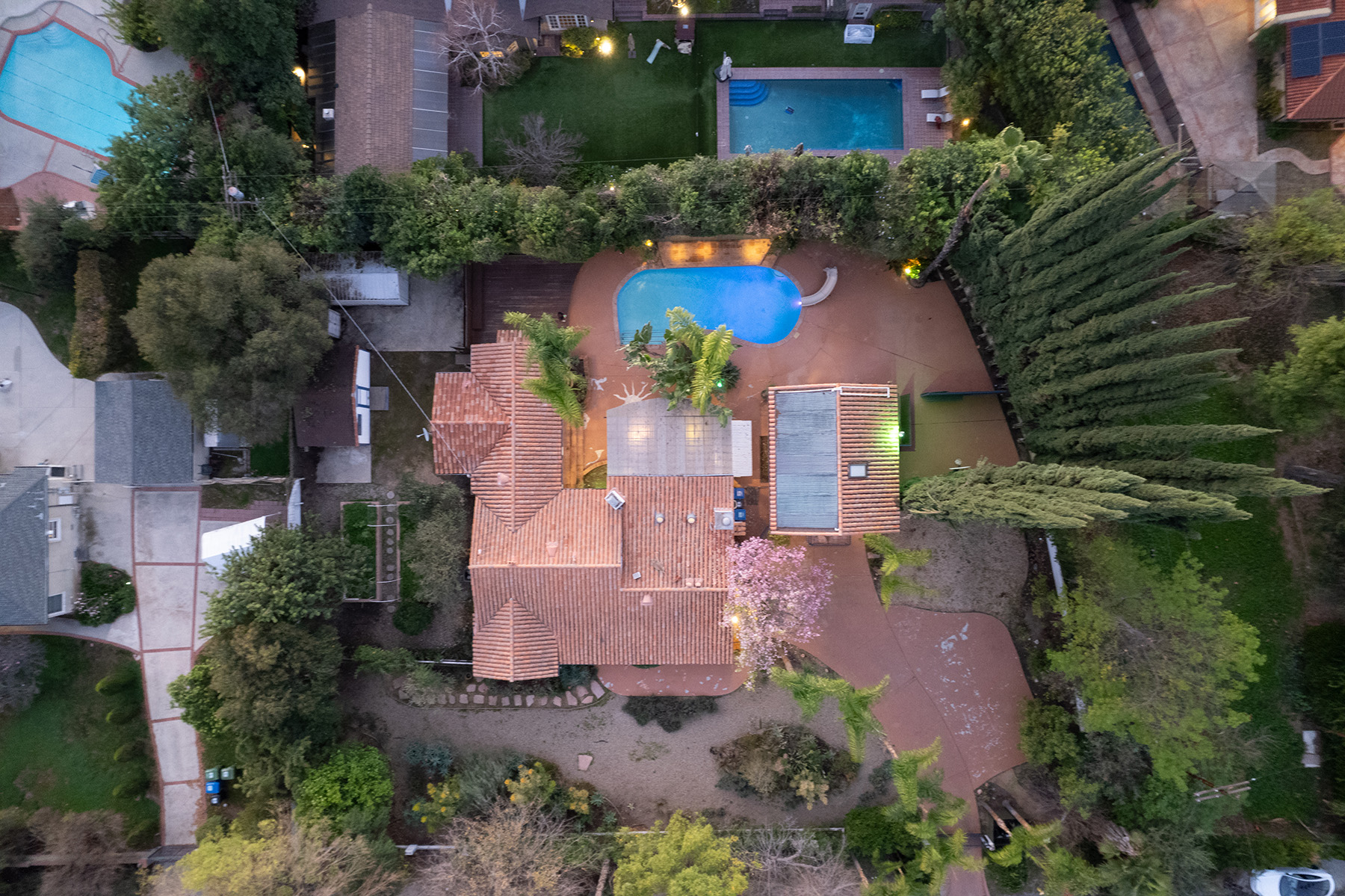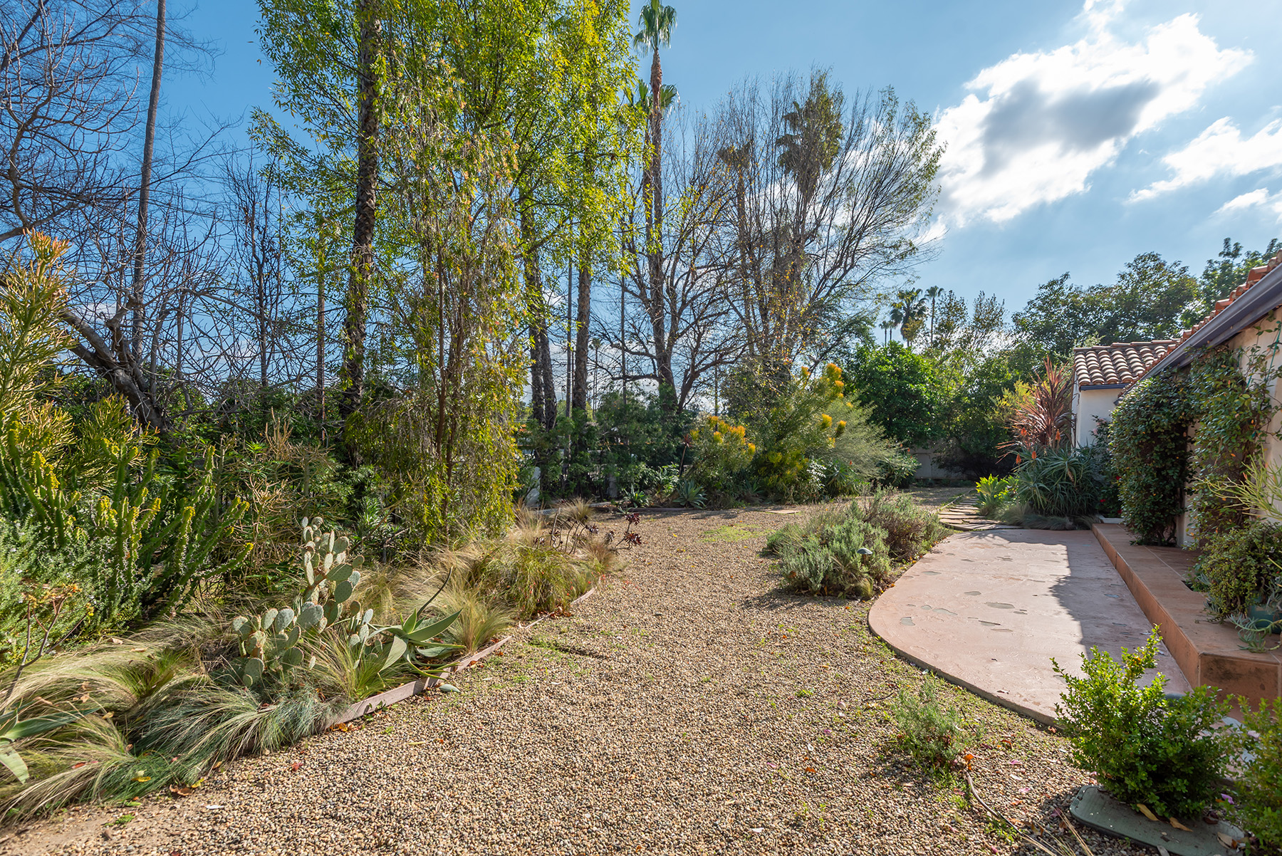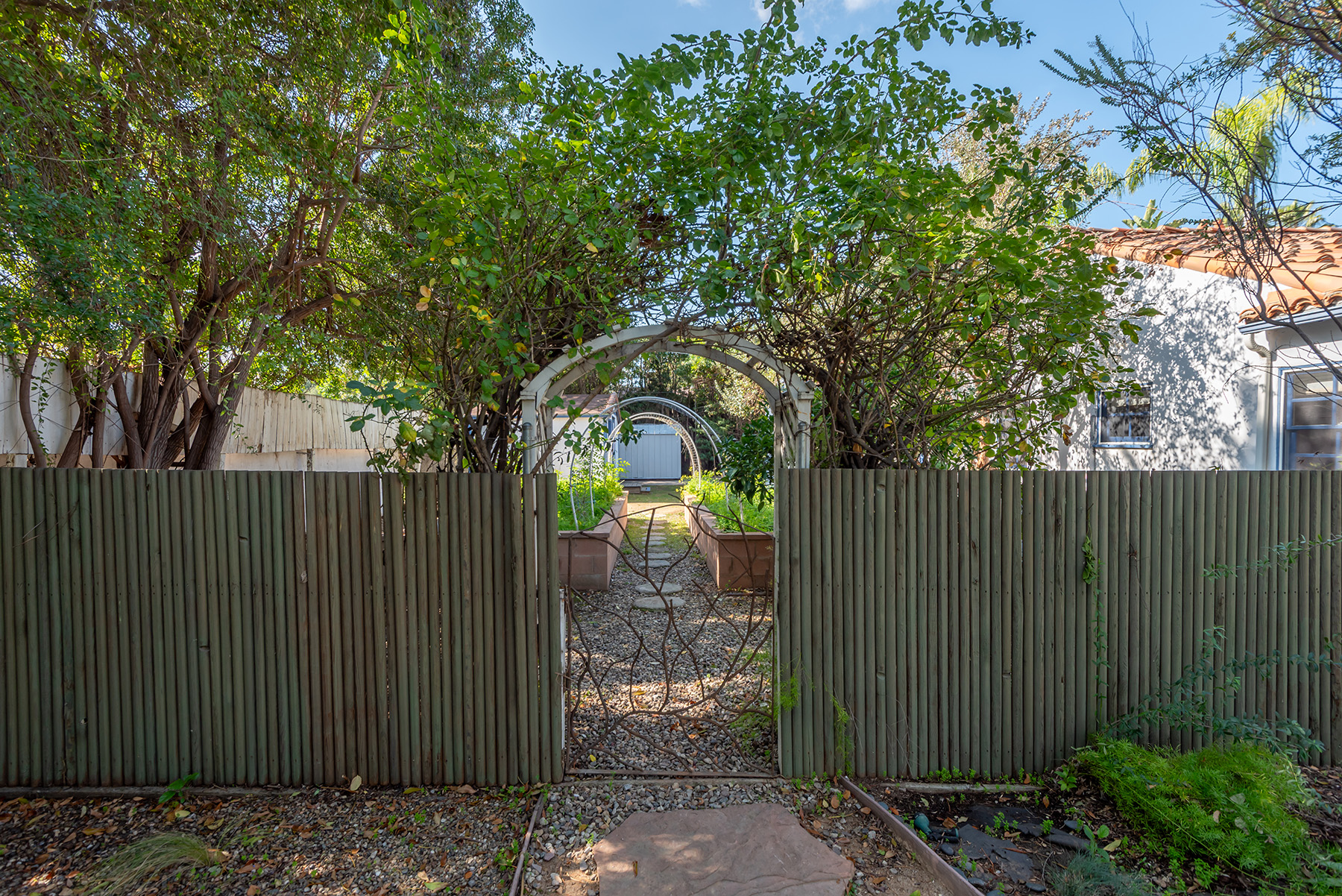 Privately gated and ideally situated south of Ventura Boulevard in Woodland Hills, this special compound presents a rare opportunity to own a single-story Spanish residence on an expansive 20,958 SQFT flat lot in one of the valley’s most sought after neighborhoods. Offering privacy, scale, and versatility, this charming home blends everyday comfort with meaningful long term potential - whether to enjoy as-is, fully renovate and expand, or build your dream estate. The interior unfolds with warmth and character, shaped by thoughtful details that give the home its unique personality. The main residence features 3 bedrooms and 2 bathrooms, hardwood flooring, smooth ceilings, recessed lighting, and is thoughtfully laid out for both entertaining and effortless daily living. A wood beamed ceiling in the family room and a chef’s kitchen with granite countertops plus large center island, anchors the heart of the home, complemented by updated bathrooms, newer interior paint, and a cozy fireplace. The spacious primary suite features a walk-in closet and a full en-suite bathroom with a spa tub and separate shower.  Abundant natural light fills the home throughout the day, creating a comfortable and welcoming environment with a seamless connection of indoor/outdoor living space. Outdoors, the resort-like grounds truly set this property apart.  Handcrafted details such as custom painted columns and mosaic wall accents quietly elevate the exterior spaces with charm and personality. The sprawling lot is highlighted by a sparkling pool, covered patio with BBQ bar, basketball court, mature gardens, planters, and multiple storage sheds - offering endless possibilities for leisure, entertaining, or future expansion. A long private electric gated driveway provides parking for multiple vehicles, adding both convenience and privacy. The estate also includes a detached two-car garage with a private upstairs recreation room and bathroom ideal for a potential ADU, home office, guest suite, or creative studio - an increasingly rare and valuable feature in today’s market. Quietly tucked away yet moments from premier dining, shopping, cafés, Topanga Village, Warner Center, local parks, and the new LA Rams practice facility, with easy access to freeways and the beach via canyon roads, this is a truly distinctive offering.