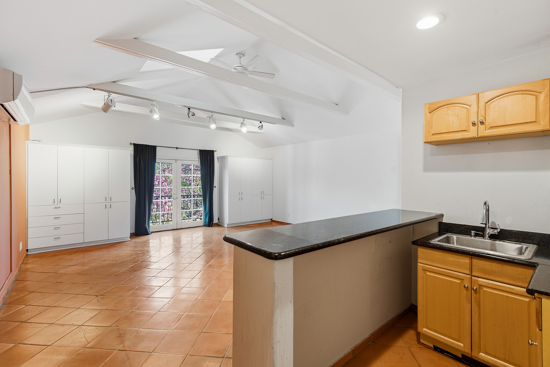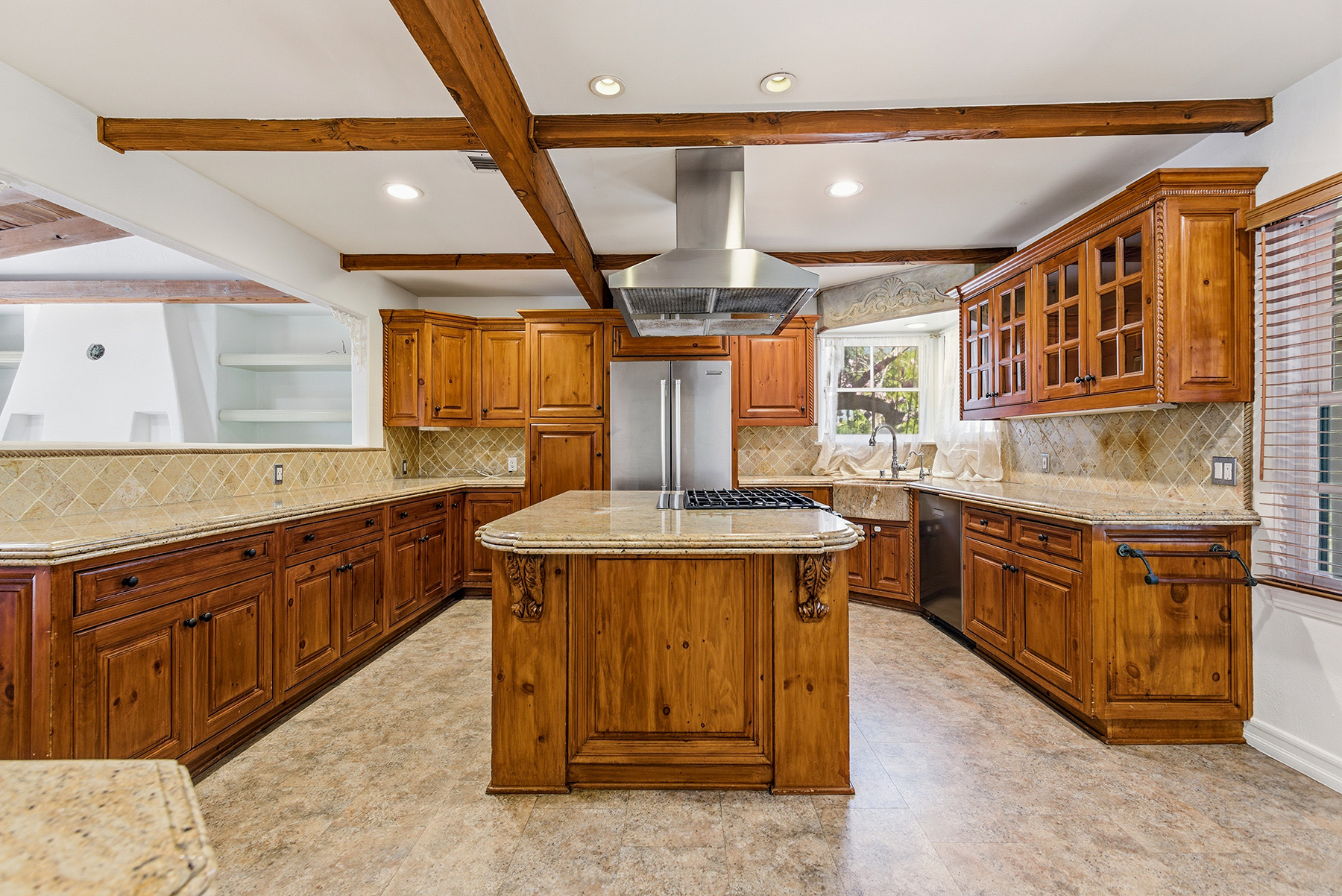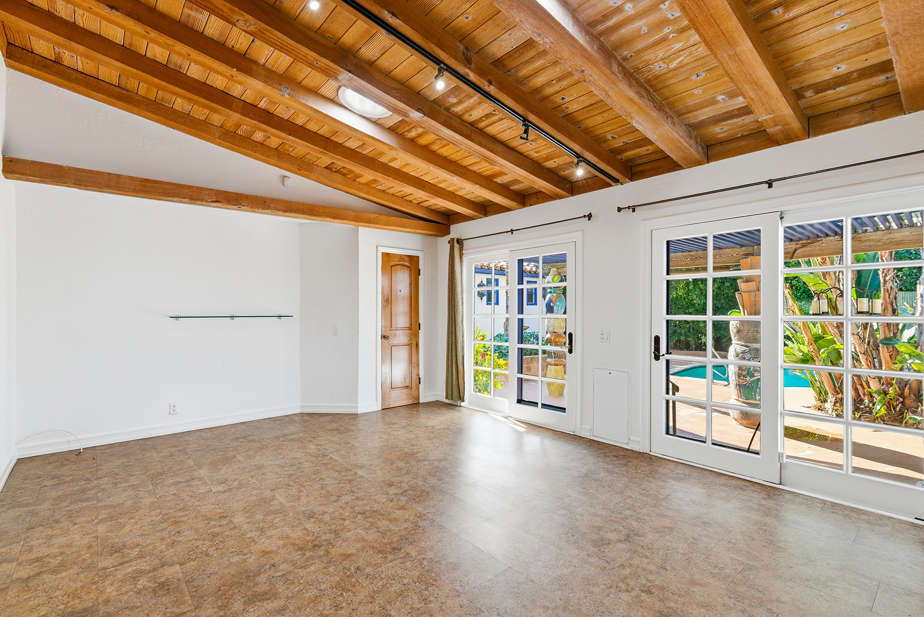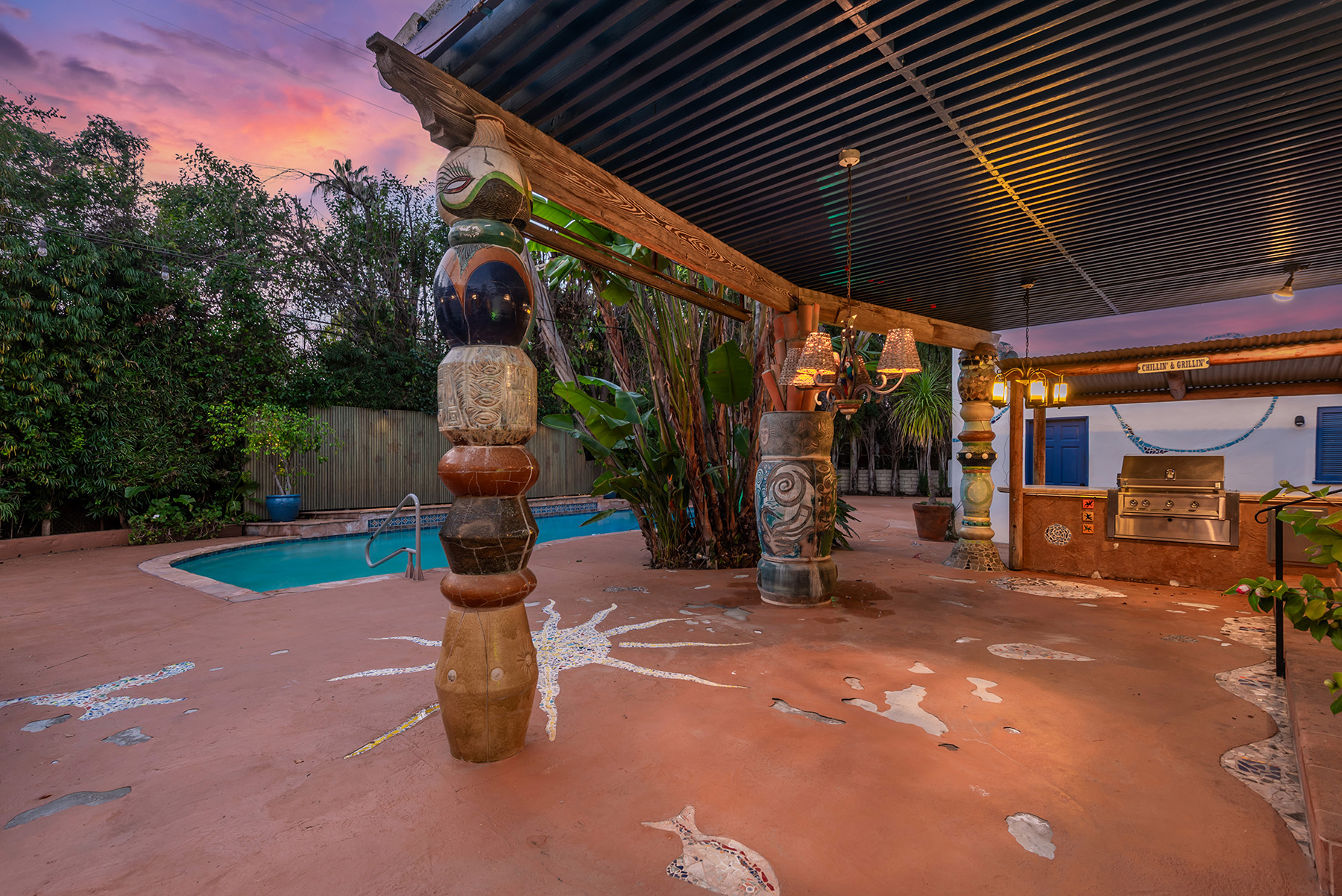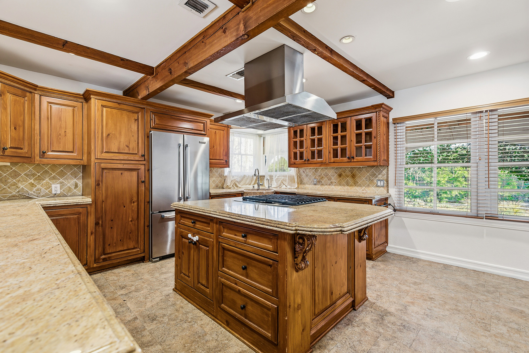 Privately gated and ideally situated south of Ventura Boulevard in Woodland Hills, this special compound presents a rare opportunity to own a single-story Spanish residence on an expansive 20,958 SQFT flat lot in one of the valley’s most sought after neighborhoods. Offering privacy, scale, and versatility, this charming home blends everyday comfort with meaningful long term potential - whether to enjoy as-is, fully renovate and expand, or build your dream estate. The interior unfolds with warmth and character, shaped by thoughtful details that give the home its unique personality. The main residence features 3 bedrooms and 2 bathrooms, hardwood flooring, smooth ceilings, recessed lighting, and is thoughtfully laid out for both entertaining and effortless daily living. A wood beamed ceiling in the family room and a chef’s kitchen with granite countertops plus large center island, anchors the heart of the home, complemented by updated bathrooms, newer interior paint, and a cozy fireplace. The spacious primary suite features a walk-in closet and a full en-suite bathroom with a spa tub and separate shower.  Abundant natural light fills the home throughout the day, creating a comfortable and welcoming environment with a seamless connection of indoor/outdoor living space. Outdoors, the resort-like grounds truly set this property apart.  Handcrafted details such as custom painted columns and mosaic wall accents quietly elevate the exterior spaces with charm and personality. The sprawling lot is highlighted by a sparkling pool, covered patio with BBQ bar, basketball court, mature gardens, planters, and multiple storage sheds - offering endless possibilities for leisure, entertaining, or future expansion. A long private electric gated driveway provides parking for multiple vehicles, adding both convenience and privacy. The estate also includes a detached two-car garage with a private upstairs recreation room and bathroom ideal for a potential ADU, home office, guest suite, or creative studio - an increasingly rare and valuable feature in today’s market. Quietly tucked away yet moments from premier dining, shopping, cafés, Topanga Village, Warner Center, local parks, and the new LA Rams practice facility, with easy access to freeways and the beach via canyon roads, this is a truly distinctive offering.