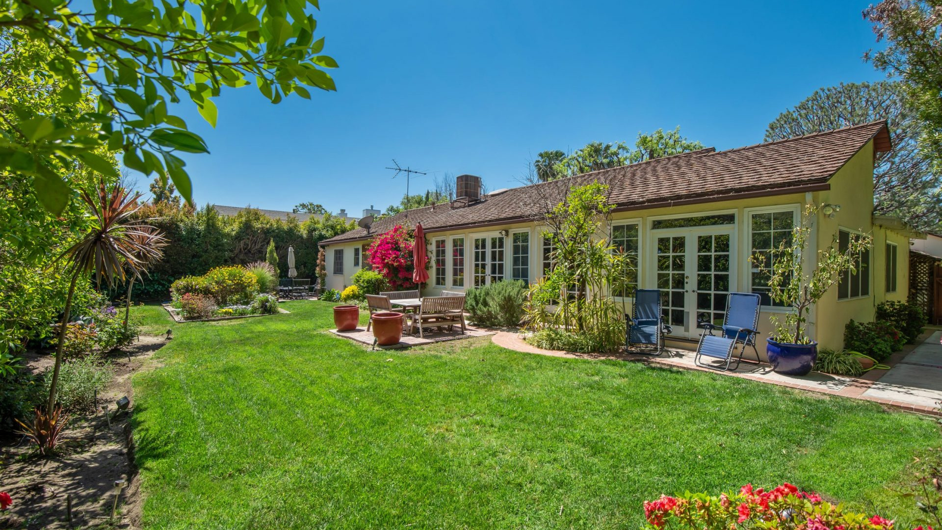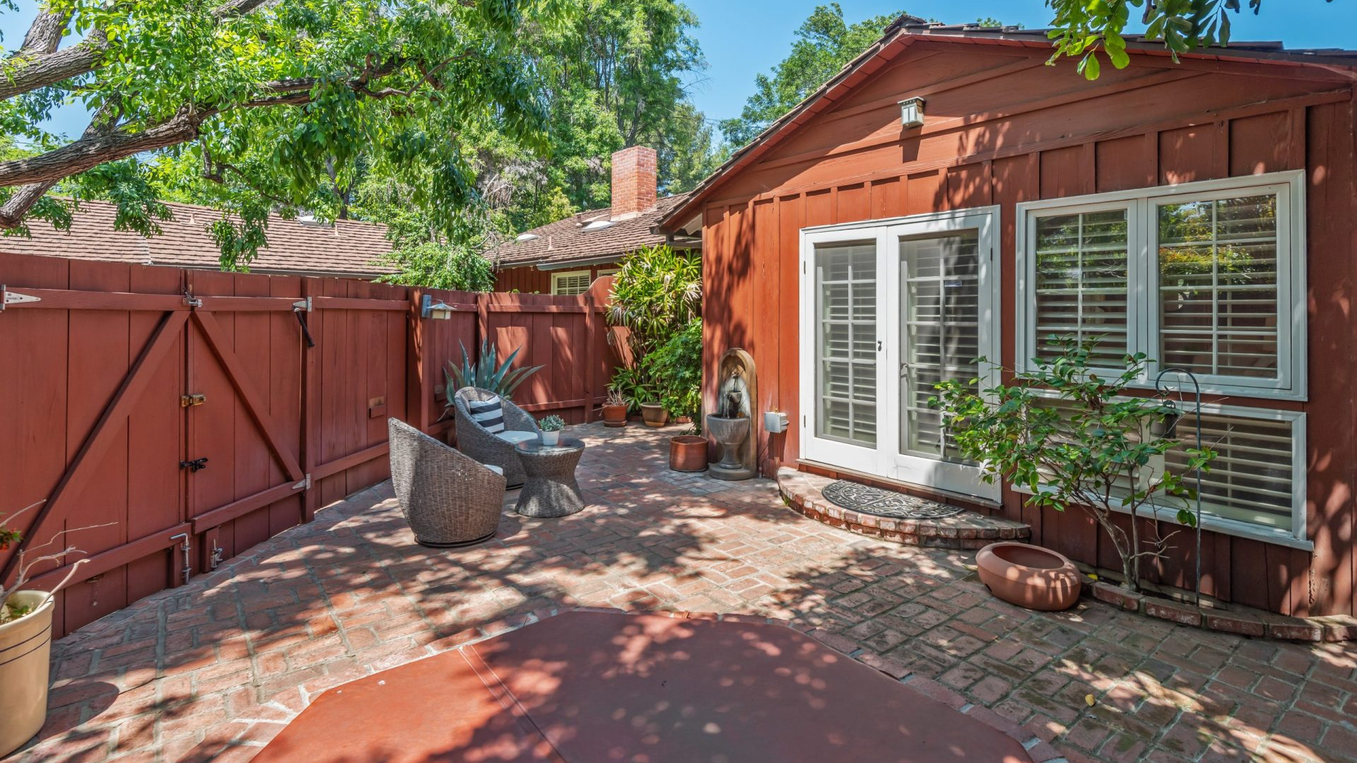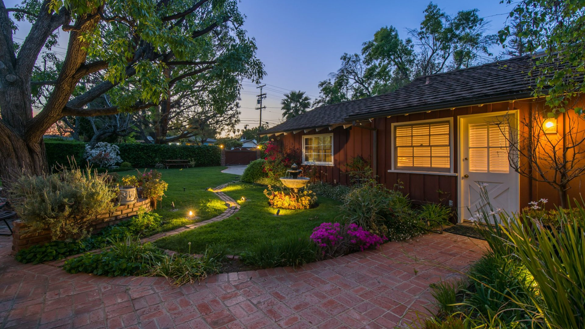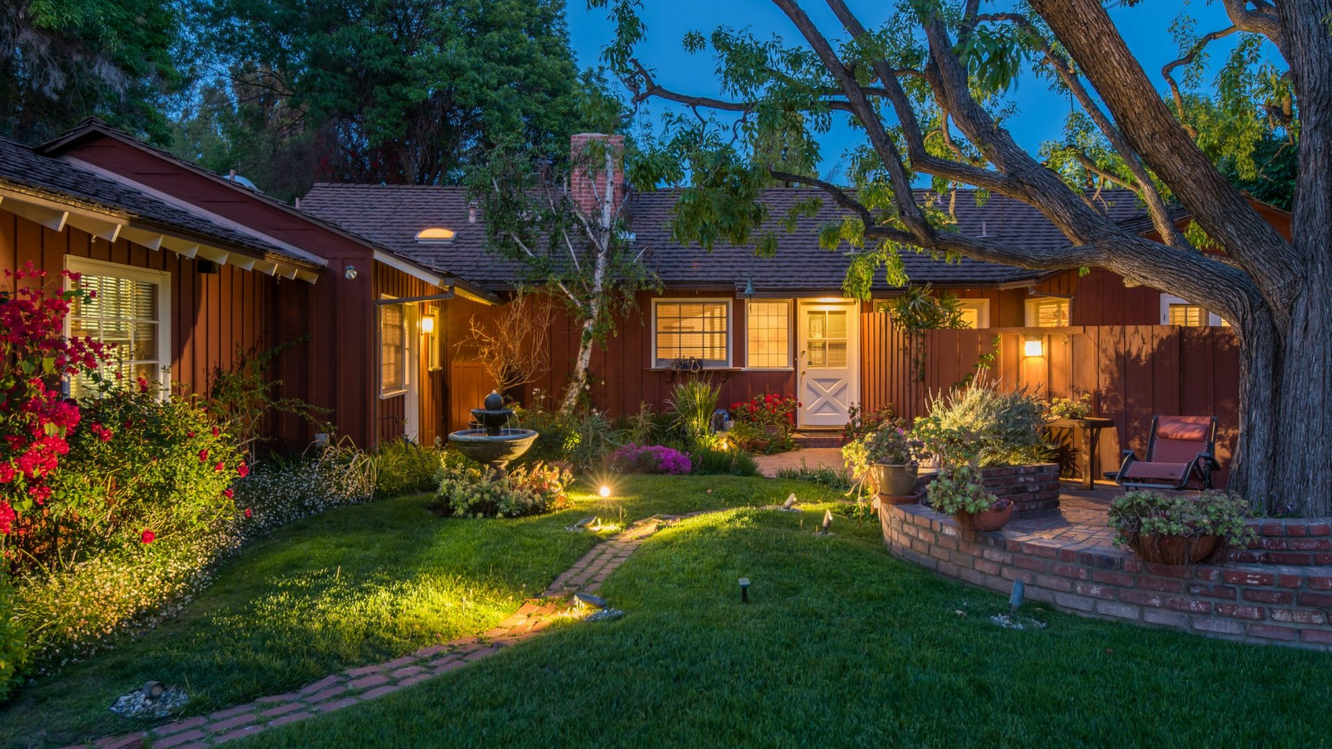 Tucked away in a beautiful Encino pocket, you will find this incomparable & private gated oasis with storybook charm. Wonderfully maintained single story Mid-Century Ranch home features 3 spacious bedrooms, 3 full bathrooms, and 2,626 SQFT of light filled living space – all situated on an expansive 12,291 SQFT lot. Highlighted by gorgeous manicured grounds with beautiful flower gardens, water fountains, sitting areas, and a charming brick pathway leading into this comfort filled home, the estate boasts brick and hardwood flooring, smooth and wood beamed ceilings, recessed lighting, French doors, an inviting fireplace, open dining area, family room with vaulted ceiling, wet bar, walk-in wine closet (which could be converted to 4th Bedroom), a relaxing sun lounge, and a cooks kitchen with butcher block counters, pantry, DCS stainless professional range/grill, a Sub-zero built-in refrigerator, and a convenient breakfast nook. The master suite has a walk-in closet, plantation shutters, en-suite bathroom with dual sinks, tub & separate shower, and French door leading to a private courtyard with in-ground spa and brick patio. The serene & picturesque rear grounds have lots of lush grassy areas and landscaping, providing the utmost in privacy. Additional amenities include Central air & heat, direct access 2-car garage, electric front gate, security system with cameras, built-in speakers, and sound system. Located within minutes to shopping and dining on trendy Ventura Blvd, and with convenient freeway access, this one really has it all!