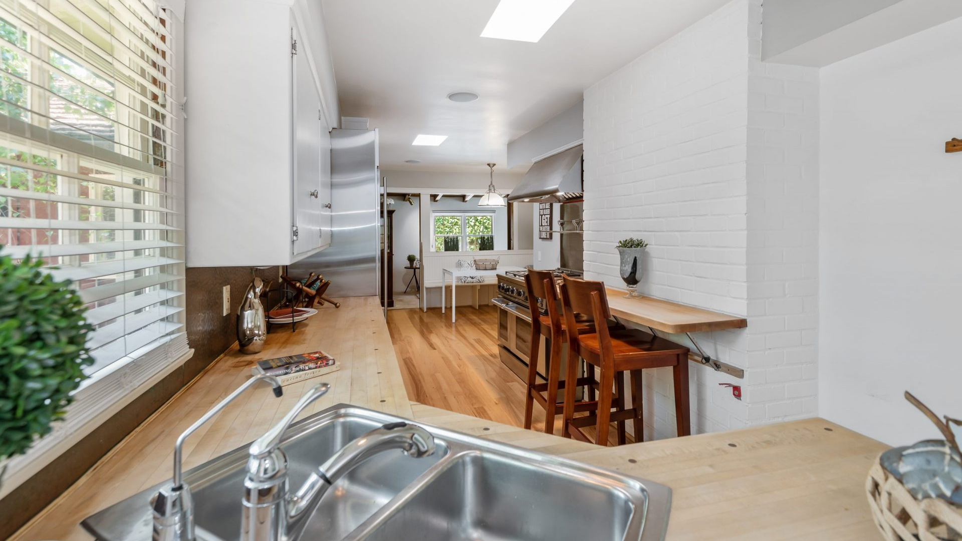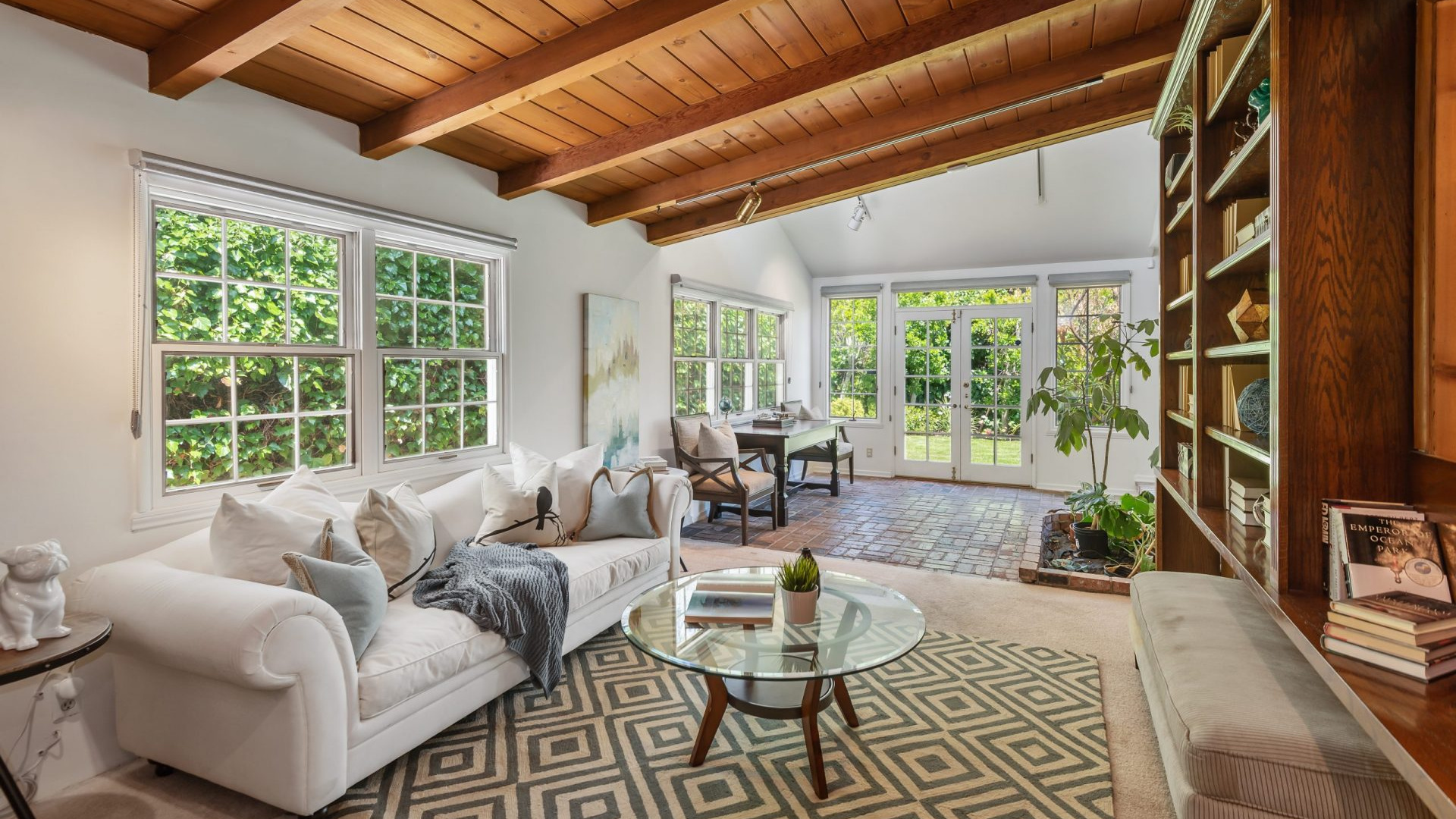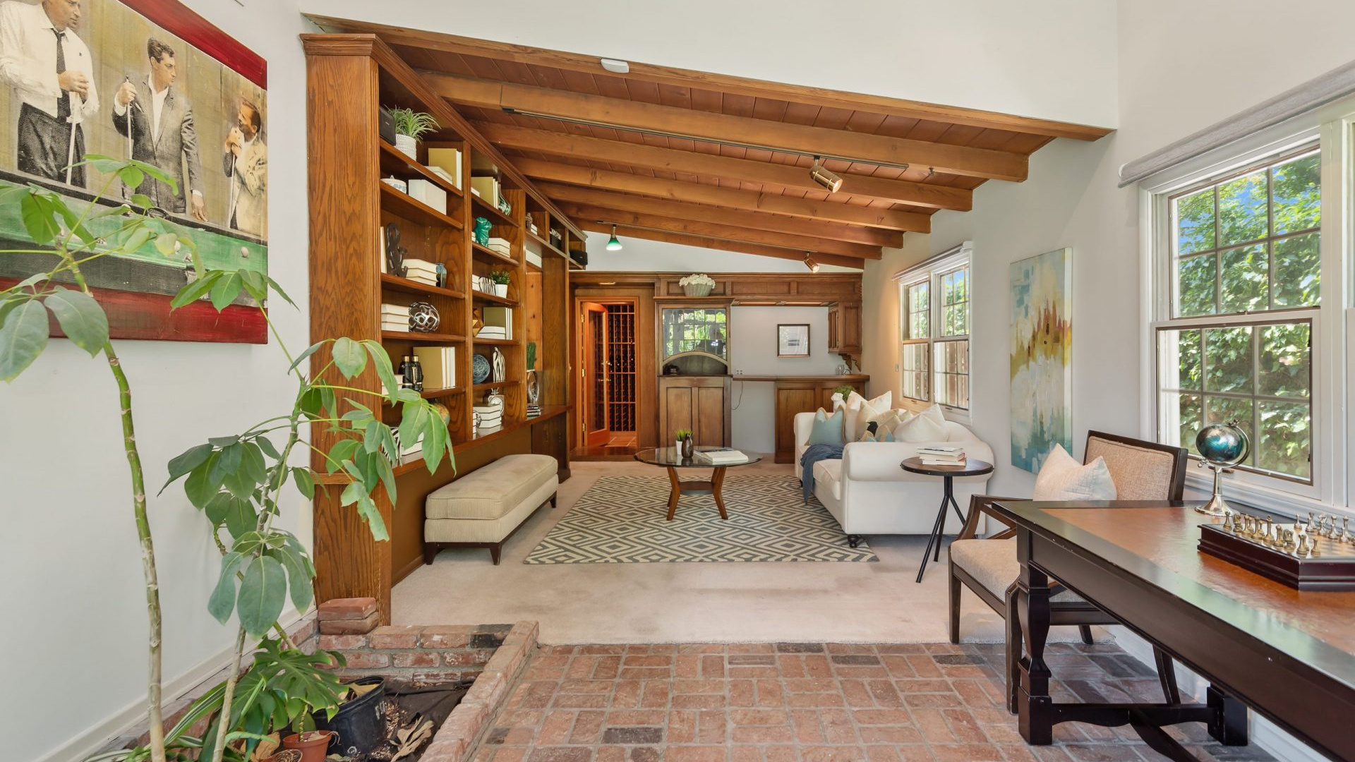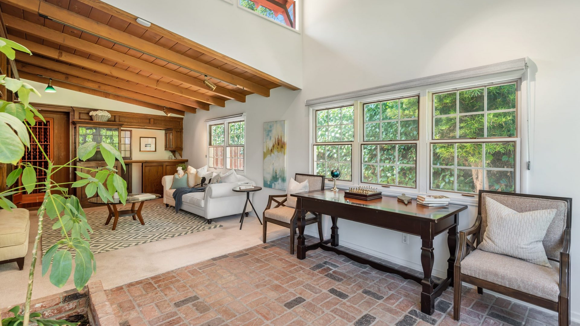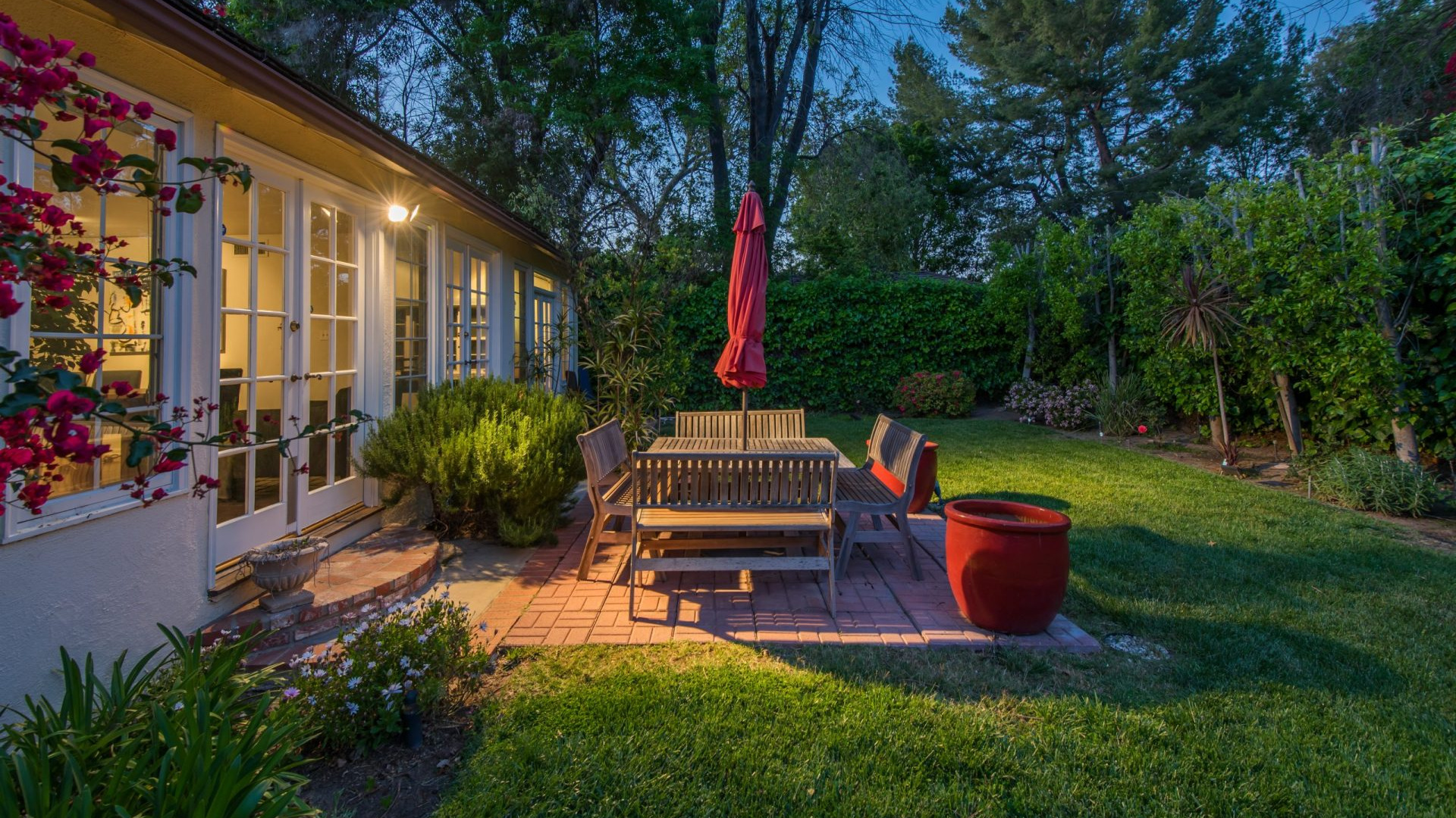 Tucked away in a beautiful Encino pocket, you will find this incomparable & private gated oasis with storybook charm. Wonderfully maintained single story Mid-Century Ranch home features 3 spacious bedrooms, 3 full bathrooms, and 2,626 SQFT of light filled living space – all situated on an expansive 12,291 SQFT lot. Highlighted by gorgeous manicured grounds with beautiful flower gardens, water fountains, sitting areas, and a charming brick pathway leading into this comfort filled home, the estate boasts brick and hardwood flooring, smooth and wood beamed ceilings, recessed lighting, French doors, an inviting fireplace, open dining area, family room with vaulted ceiling, wet bar, walk-in wine closet (which could be converted to 4th Bedroom), a relaxing sun lounge, and a cooks kitchen with butcher block counters, pantry, DCS stainless professional range/grill, a Sub-zero built-in refrigerator, and a convenient breakfast nook. The master suite has a walk-in closet, plantation shutters, en-suite bathroom with dual sinks, tub & separate shower, and French door leading to a private courtyard with in-ground spa and brick patio. The serene & picturesque rear grounds have lots of lush grassy areas and landscaping, providing the utmost in privacy. Additional amenities include Central air & heat, direct access 2-car garage, electric front gate, security system with cameras, built-in speakers, and sound system. Located within minutes to shopping and dining on trendy Ventura Blvd, and with convenient freeway access, this one really has it all!